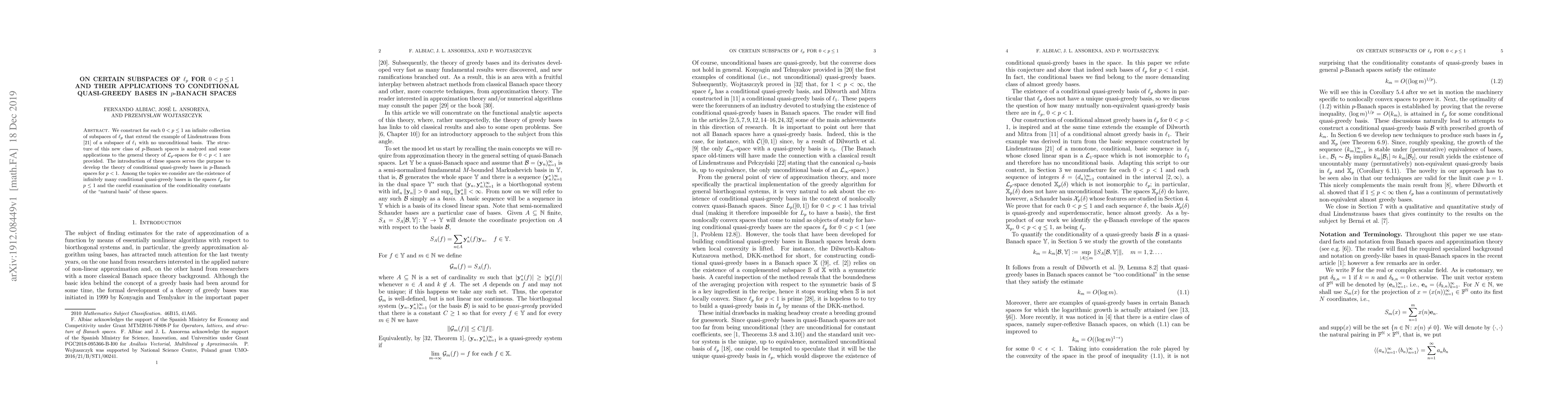 This paper constructs subspaces of $\ell_p$ for $0<p\le 1$ that lack unconditional bases, extending previous work by Lindenstrauss. It analyzes these new $p$-Banach spaces and explores their applications to conditional quasi-greedy bases, particularly focusing on the existence and properties of such bases in $\ell_p$ for $p\le 1$.