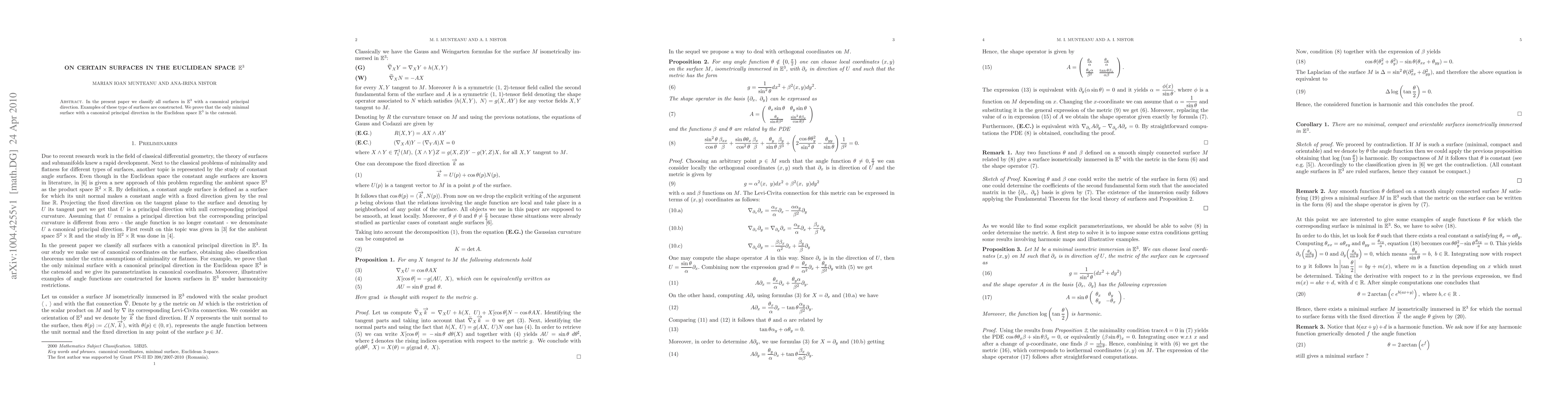 This paper classifies surfaces in $\E^3$ with a canonical principal direction and constructs examples. It proves that the only minimal surface with such a direction is the catenoid.