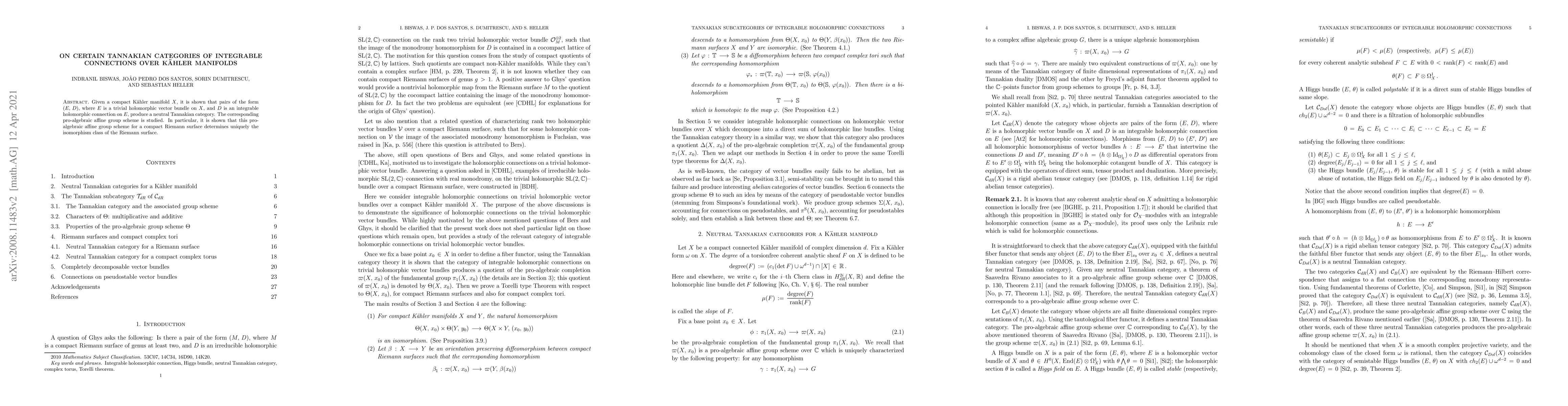 Given a compact Kaehler manifold X, it is shown that pairs of the form (E, D), where E is a trivial holomorphic vector bundle on X, and D is an integrable holomorphic connection on $E$, produce a neutral Tannakian category. The corresponding pro-algebraic affine group scheme is studied. In particular, it is shown that this pro-algebraic affine group scheme for a compact Riemann surface determines uniquely the isomorphism class of the Riemann surface.