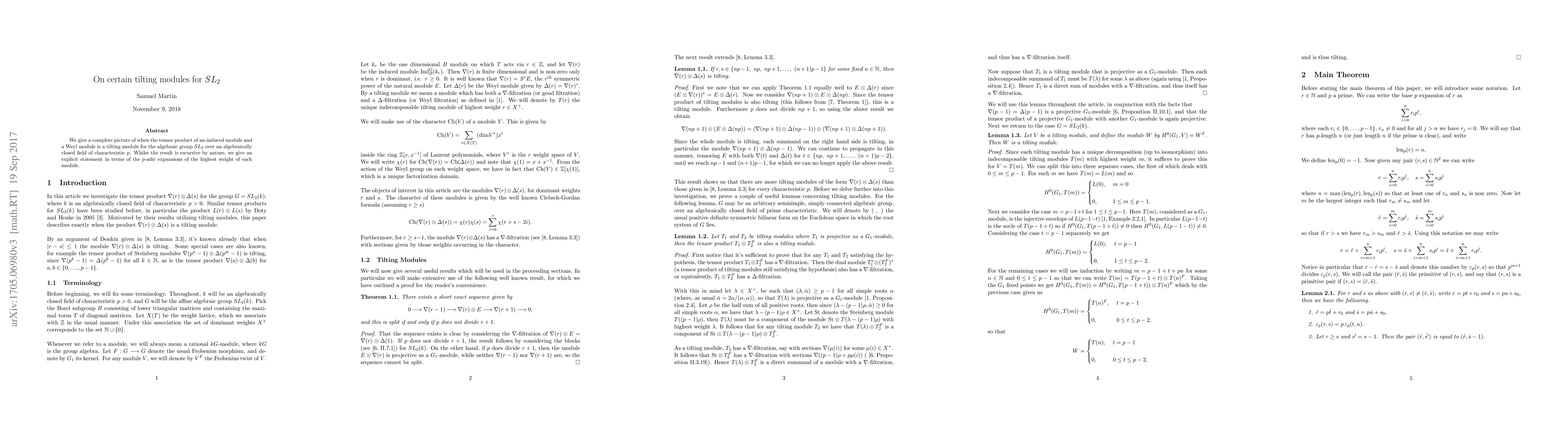 This paper provides a comprehensive analysis of when the tensor product of an induced module and a Weyl module yields a tilting module for $SL_2$, with results explicitly stated in terms of the $p$-adic expansions of the highest weights involved. The findings are recursive but offer clear conditions for the formation of these tilting modules.