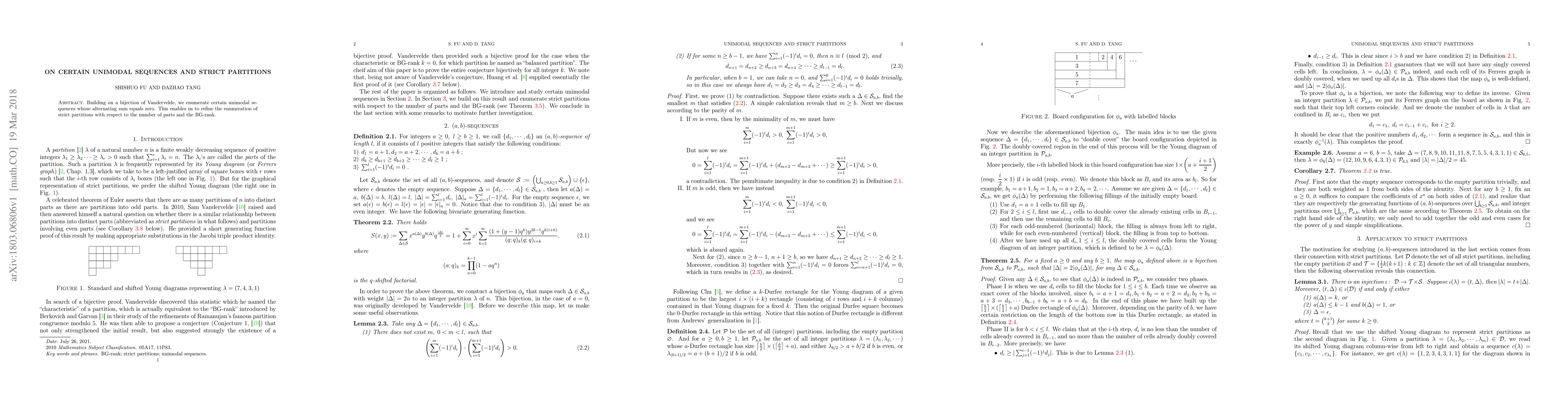 Researchers found unimodal sequences where alternating sums equal zero, helping refine strict partitions with respect to parts and BG-rank, building on a Vandervelde bijection.