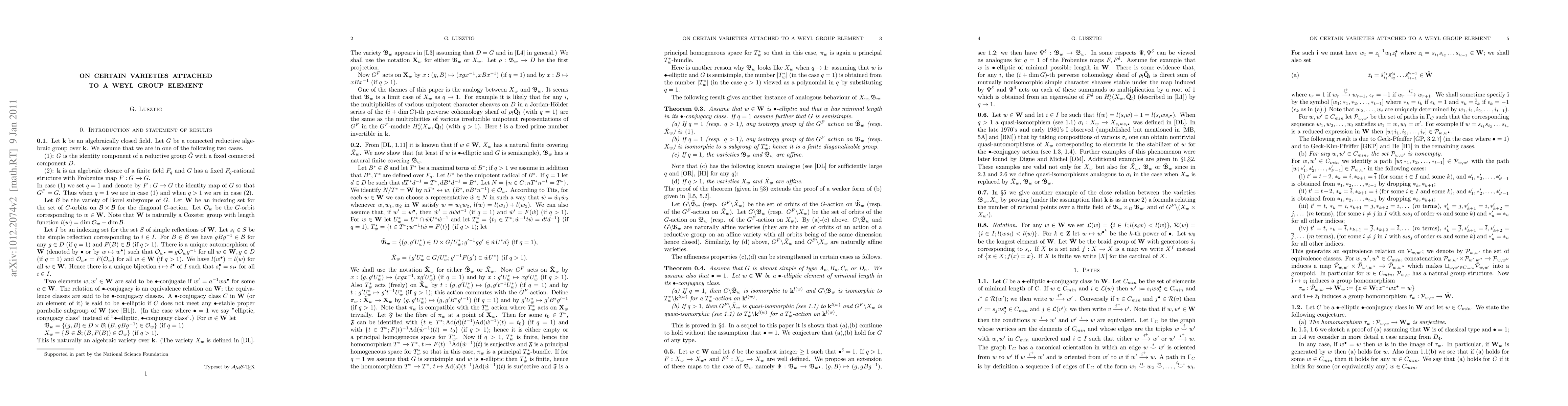 Let w be an elliptic element of the Weyl group of a connected reductive group G. Let X be the set of pairs (g,B) where g is an element of G, B is a Borel subgroup of G and B,gBg^{-1} are in relative position w. Then G acts naturally on X. Assume that w has minimal length in its conjugacy class. We show that the set of G-orbits in X has a well defined structure of an affine algebraic variety V. When G is a classical group we show that this variety is an affine space modulo the action of a finite diagonalizable group. In this case we also construct some nontrivial automorphisms of X.