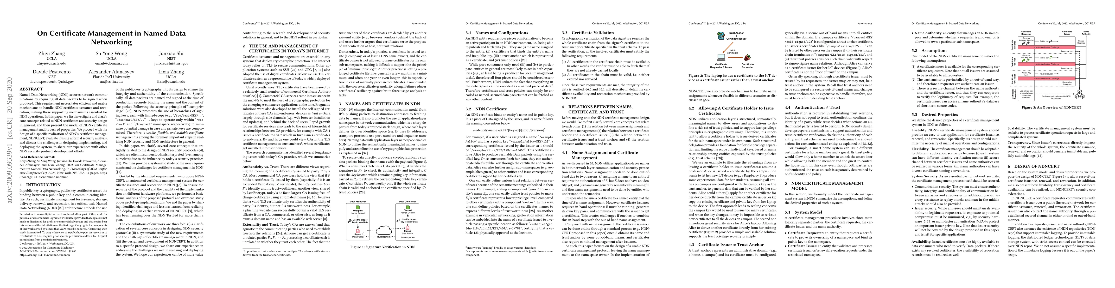 This paper explores the essential mechanisms for managing certificates in Named Data Networking (NDN), focusing on the secure issuance and revocation of certificates. It introduces NDNCERT, a specific certificate management model, and evaluates it through formal security analysis, while discussing challenges in its design, implementation, and deployment.