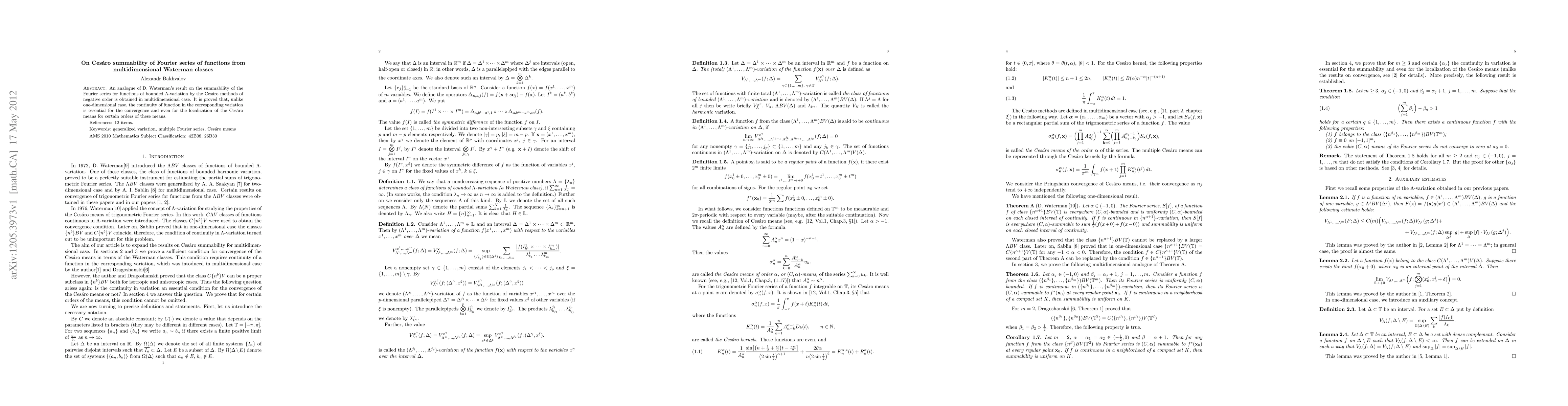 This paper extends Waterman's result on the summability of Fourier series to multidimensional functions of bounded Λ-variation, showing that continuity is crucial for the convergence of Cesàro means, unlike in the one-dimensional case. The study highlights the importance of function continuity in the localization of Cesàro means for certain orders.