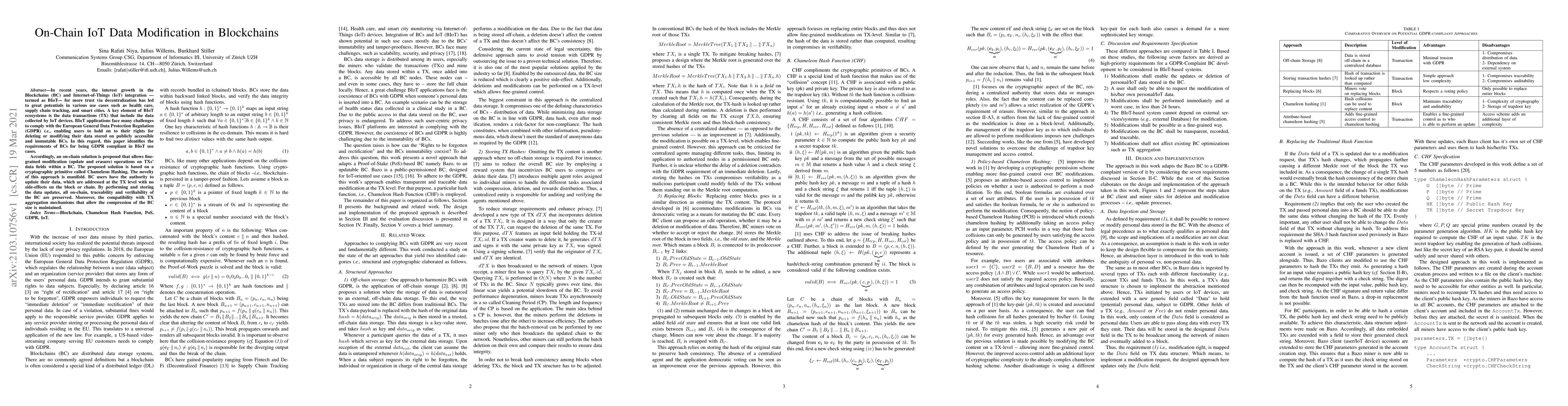 This paper proposes an on-chain solution using Chameleon Hashing to enable fine-grained data modification (update and erasure) within blockchain transactions for GDPR compliance in BIoT use cases, preserving traceability and compatibility with transaction aggregation mechanisms.