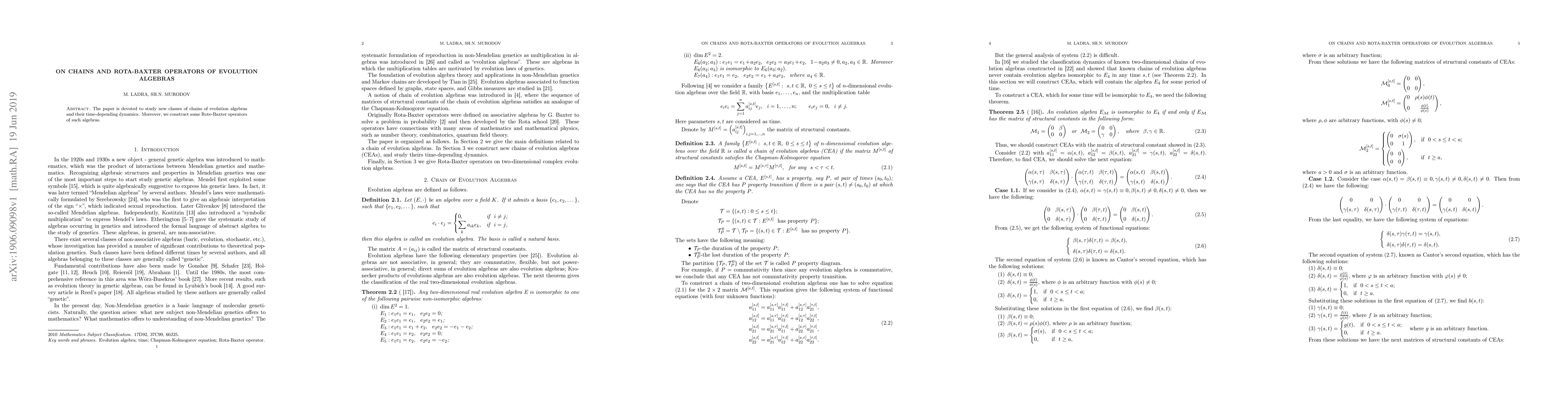 Researchers investigated chains of evolution algebras and constructed Rota-Baxter operators, focusing on their time-dependent dynamics and potential applications.