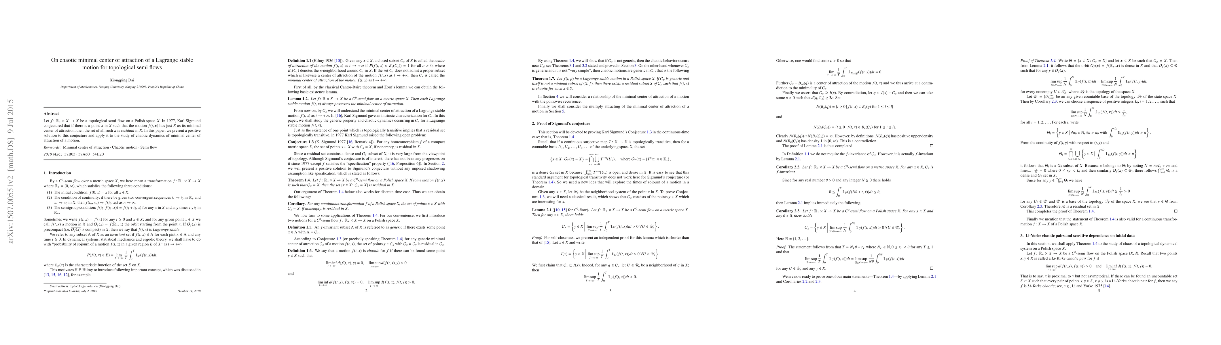 In this paper, we study the chaotic dynamics of a minimal center of attraction of a Lagrange stable motion for semi flows.