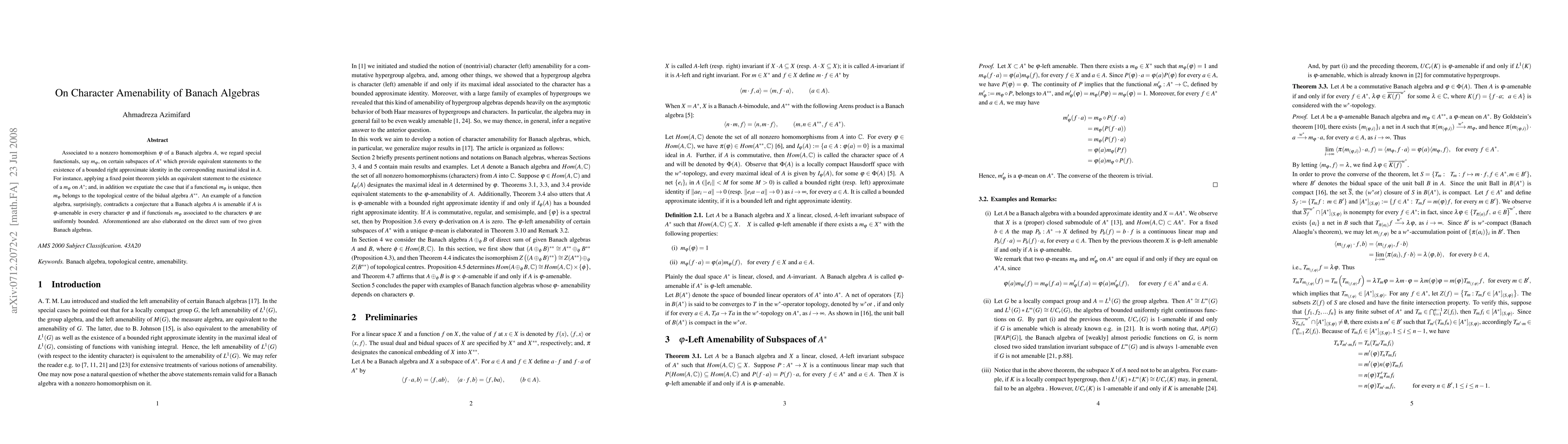 This paper explores the relationship between character amenability of Banach algebras and a specific type of functional on their dual spaces. It reveals a counterexample to a conjecture about amenable function algebras.