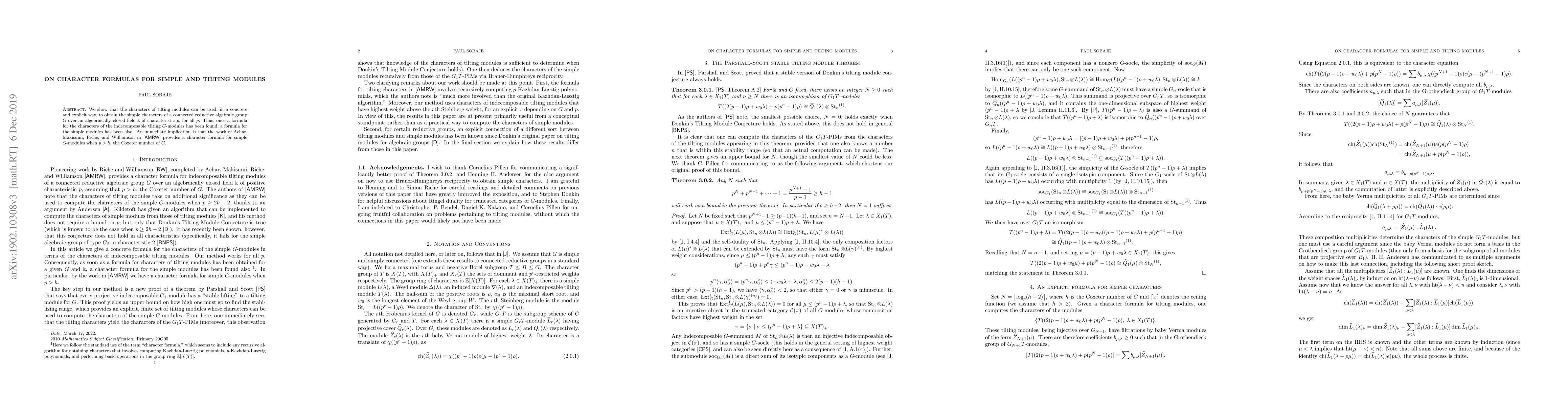 We show that the characters of tilting modules can be used, in a concrete and explicit way, to obtain the simple characters of a connected reductive algebraic group $G$ over an algebraically closed field $\Bbbk$ of characteristic $p$, for all $p$. Thus, once a formula for the characters of the indecomposable tilting $G$-modules has been found, a formula for the simple modules has been also. An immediate implication is that the work of Achar, Makisumi, Riche, and Williamson in \cite{AMRW} provides a character formula for simple $G$-modules when $p>h$, the Coxeter number of $G$.