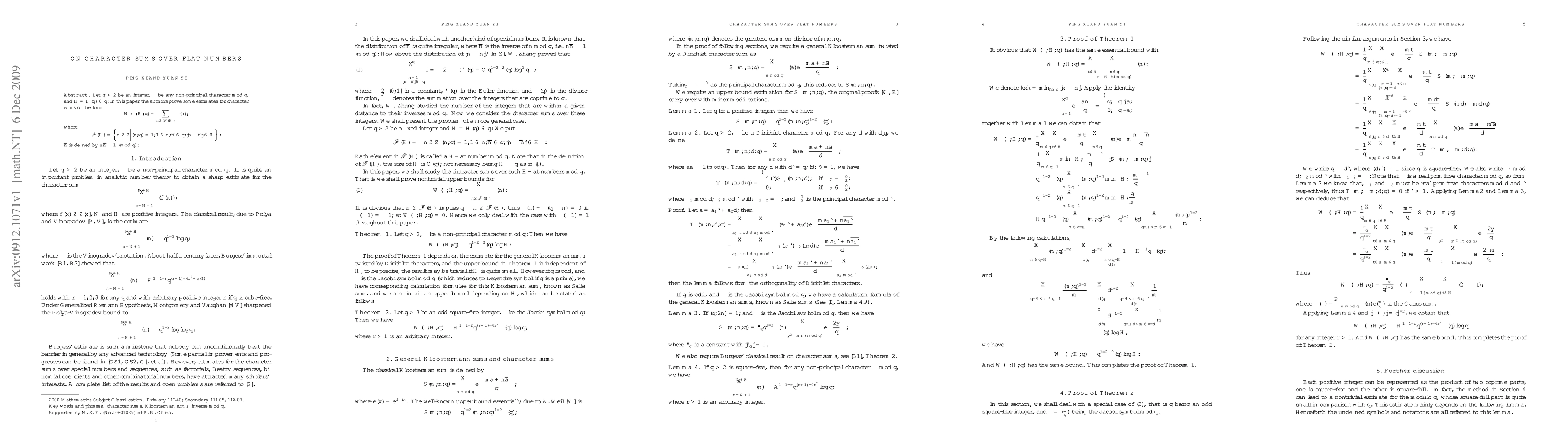 This paper provides estimates for character sums over flat numbers, specifically for non-principal characters modulo $q$, where $q \geq 2$ and $H(q) \leq q$. The study focuses on sums involving numbers $n$ that satisfy certain congruence and proximity conditions relative to their modular inverses.