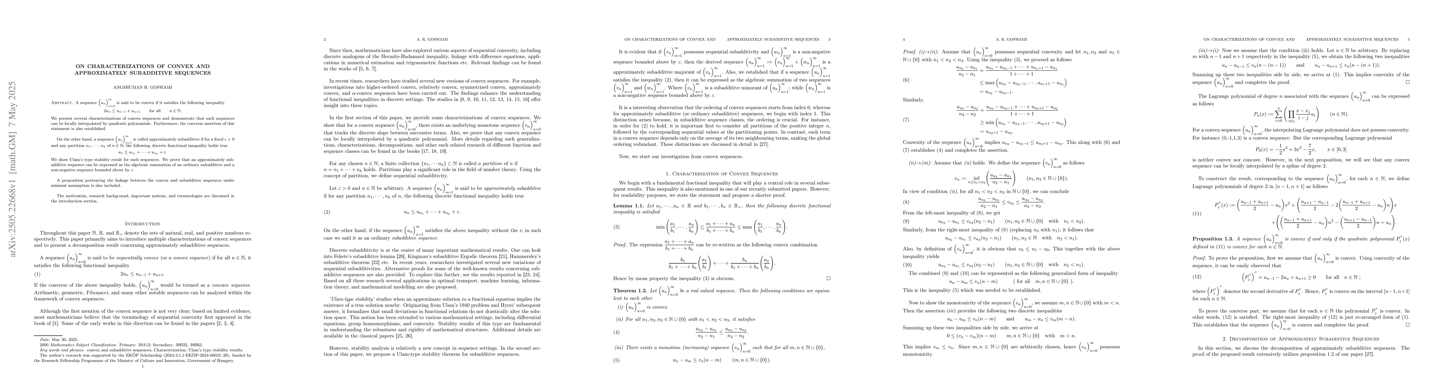 The paper provides novel characterizations and representations of convex and approximately subadditive sequences, along with proving key properties and stability results.