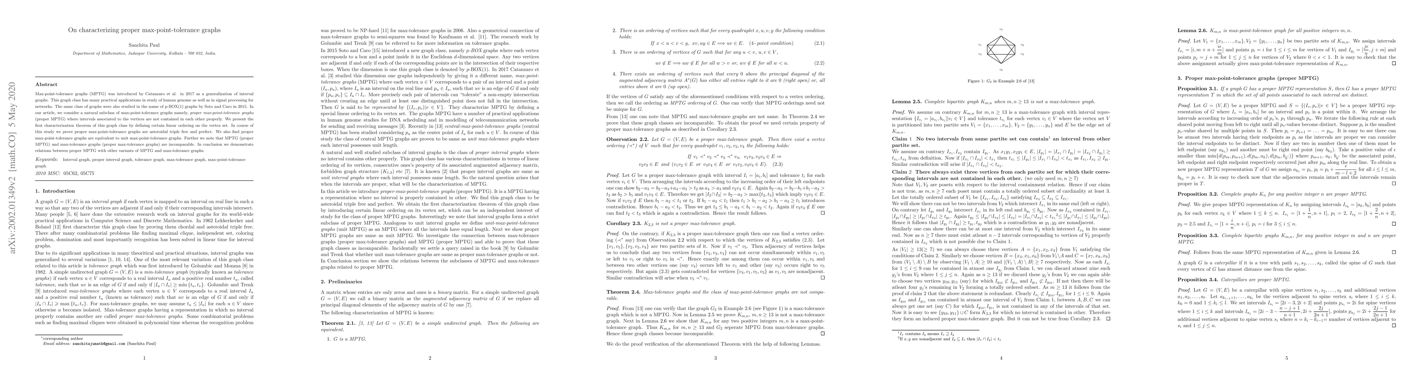 This paper characterizes proper max-point-tolerance graphs (proper MPTG), a subclass of MPTG where vertex intervals do not properly contain each other. The authors present a characterization theorem, proving proper MPTG are asteroidal triple free and perfect, and show their equivalence to unit MPTG.