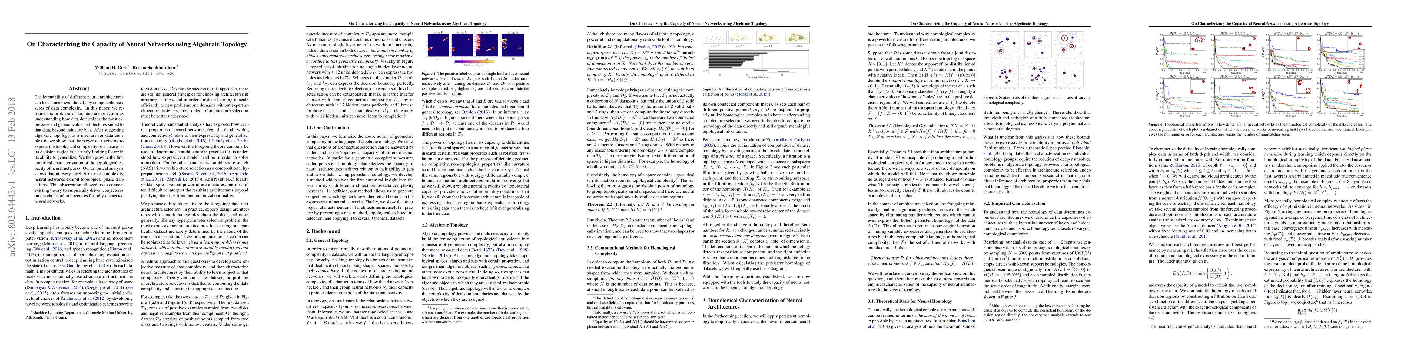 This paper uses algebraic topology to measure data complexity and characterize neural network capacity, showing that a network's ability to generalize is limited by its capacity to express the topological complexity of a dataset. Empirical analysis reveals topological phase transitions in neural networks, linking theoretical insights with practical architecture selection.