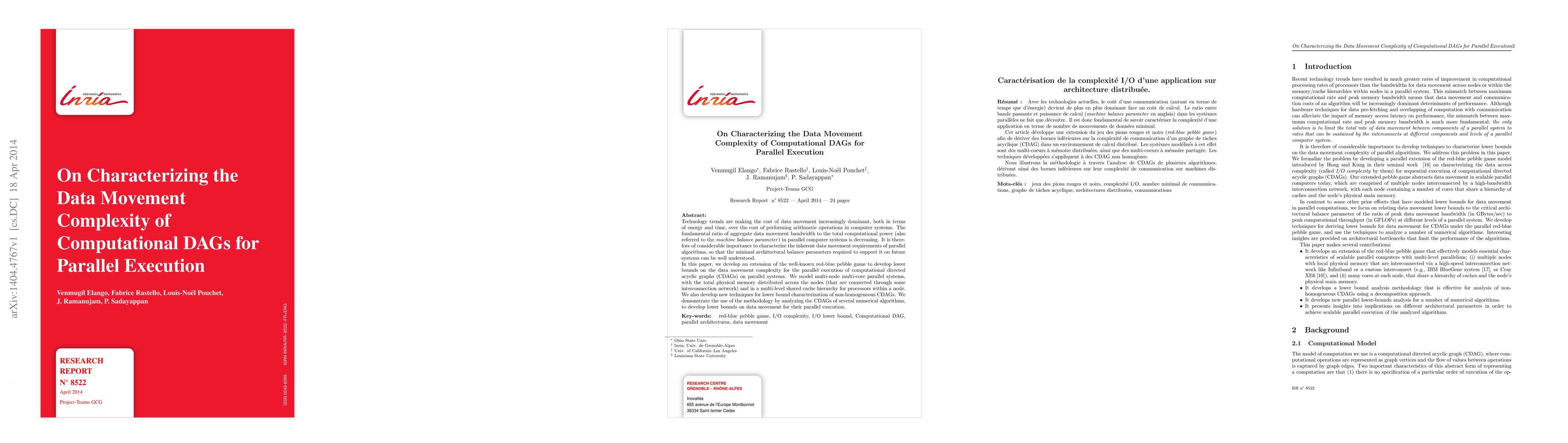 This paper develops a method to characterize the data movement complexity of computational directed acyclic graphs (CDAGs) for parallel execution, using an extended red-blue pebble game to establish lower bounds. It also introduces new techniques for non-homogeneous CDAGs and applies the methodology to several numerical algorithms to determine their data movement requirements.