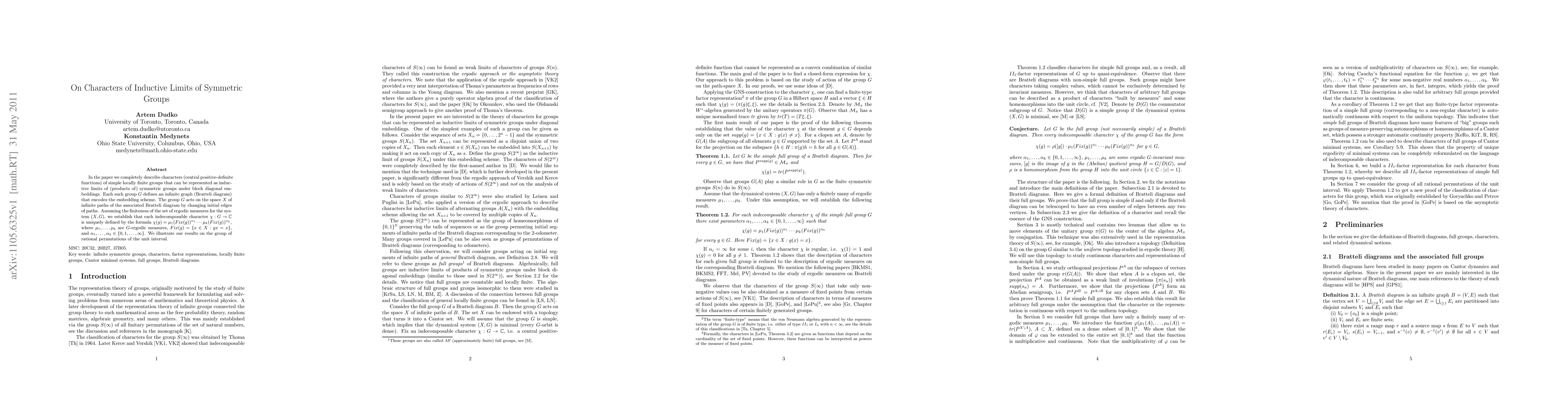 This paper describes how to uniquely determine characters of groups formed from inductive limits of symmetric groups, using a Bratteli diagram to encode the embedding scheme.