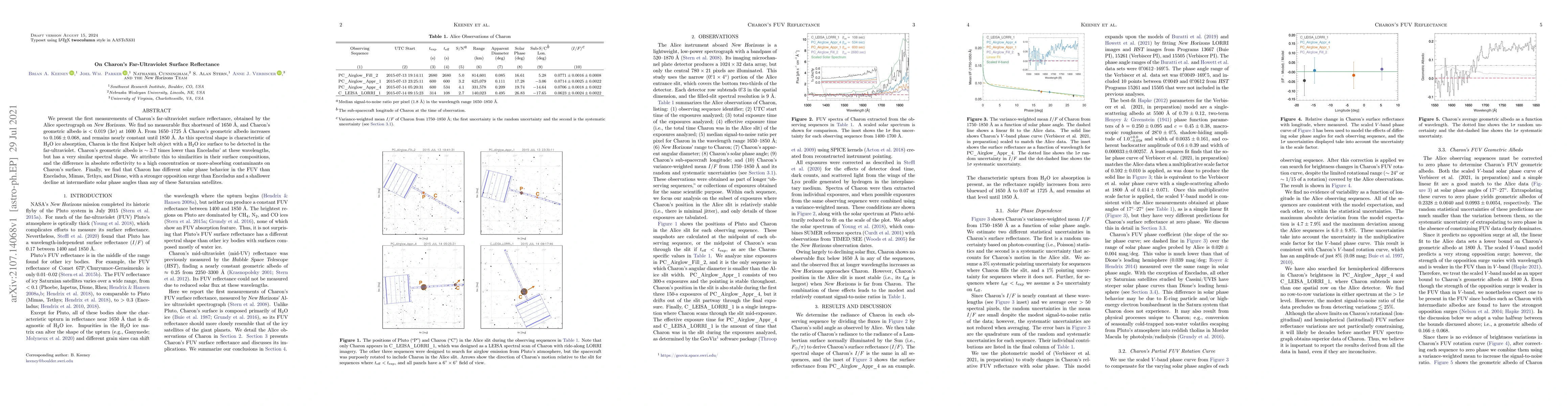 This study, using New Horizons' Alice spectrograph, presents the first measurements of Charon's far-ultraviolet (FUV) surface reflectance. No significant flux was detected below 1650 Å, with a geometric albedo of less than 0.019 at 1600 Å. From 1650-1725 Å, the albedo rose to 0.166±0.068, indicating water ice presence. Charon's FUV spectral shape resembles Enceladus', yet its absolute reflectivity is lower, attributed to surface contaminants. Unique solar phase behavior in Charon's FUV is also noted, with a stronger opposition surge than Enceladus and a different decline rate at intermediate angles.