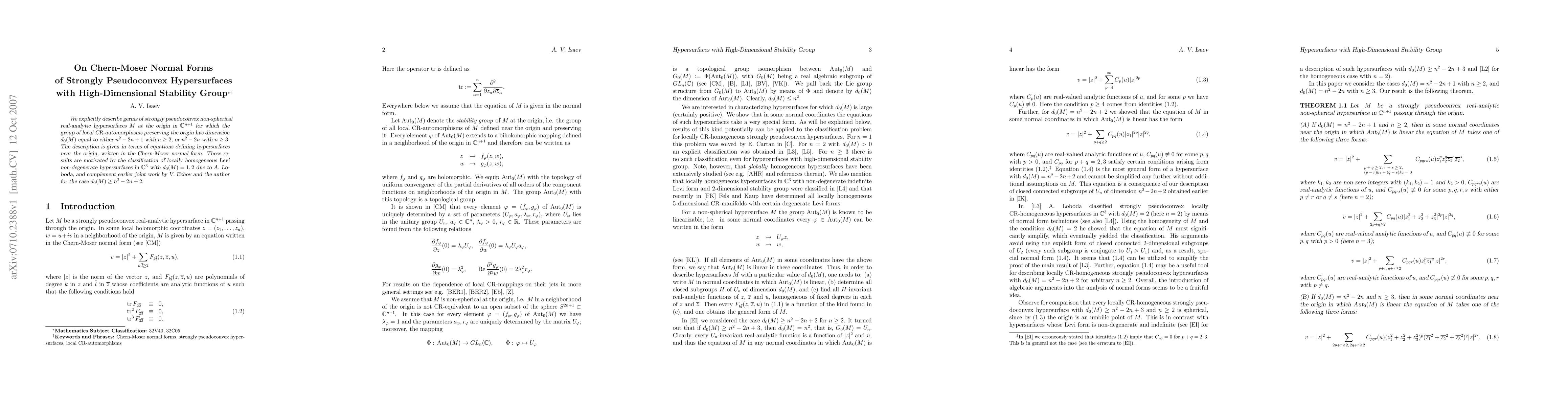 This paper provides explicit descriptions of strongly pseudoconvex real-analytic hypersurfaces in $\CC^{n+1}$ with high-dimensional stability groups in Chern-Moser normal form. The results complement previous work by classifying such hypersurfaces for specific dimensions of the stability group.