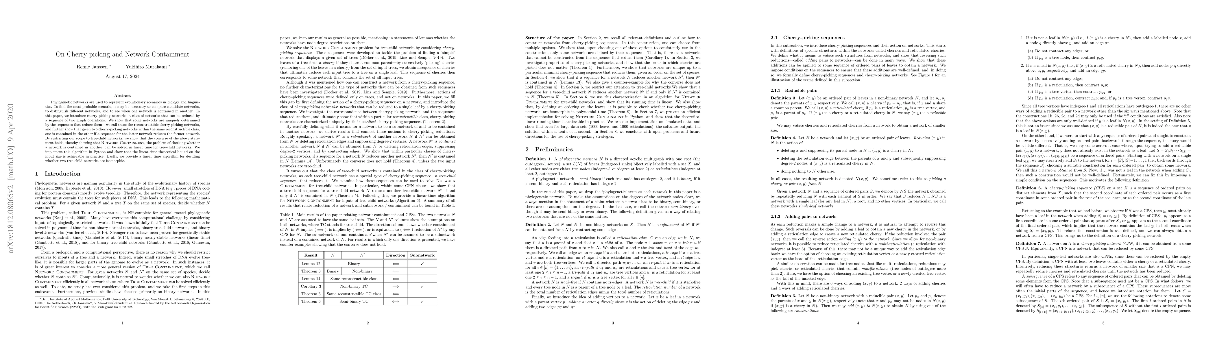 This paper introduces cherry-picking networks, a class reducible by specific graph operations, and demonstrates how reconstructible cherry-picking networks can be uniquely identified by their reduction sequences. It proves that network containment can be solved in linear time for tree-child networks and provides practical evidence through a Python implementation.