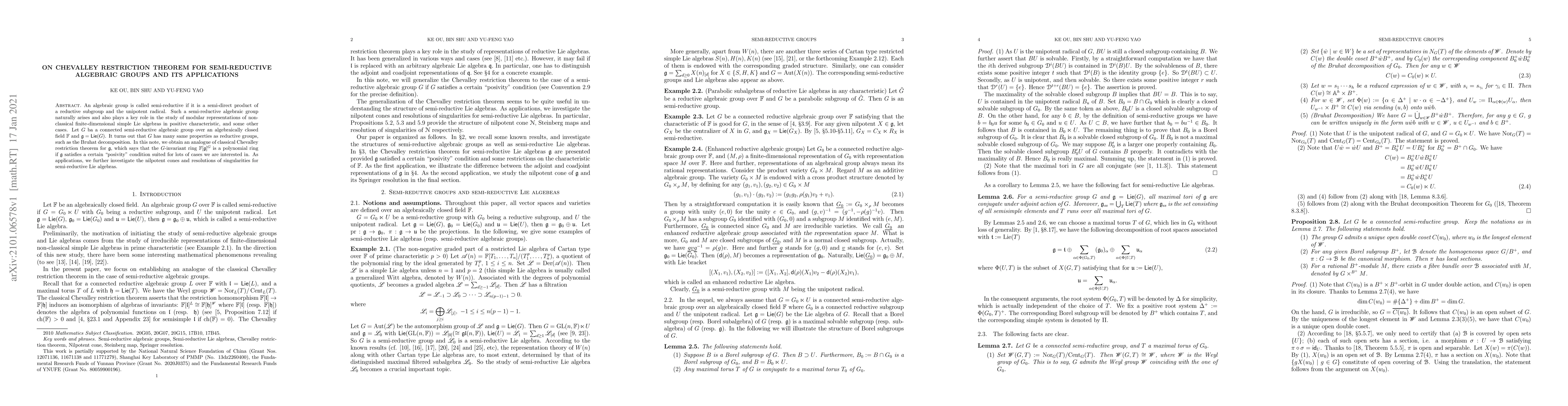 This paper explores the Chevalley restriction theorem for semi-reductive algebraic groups, proving an analogue of the classical theorem for semi-reductive Lie algebras. It demonstrates that the $G$-invariant ring is a polynomial ring under certain conditions, and applies this result to study nilpotent cones and resolutions of singularities for these Lie algebras.