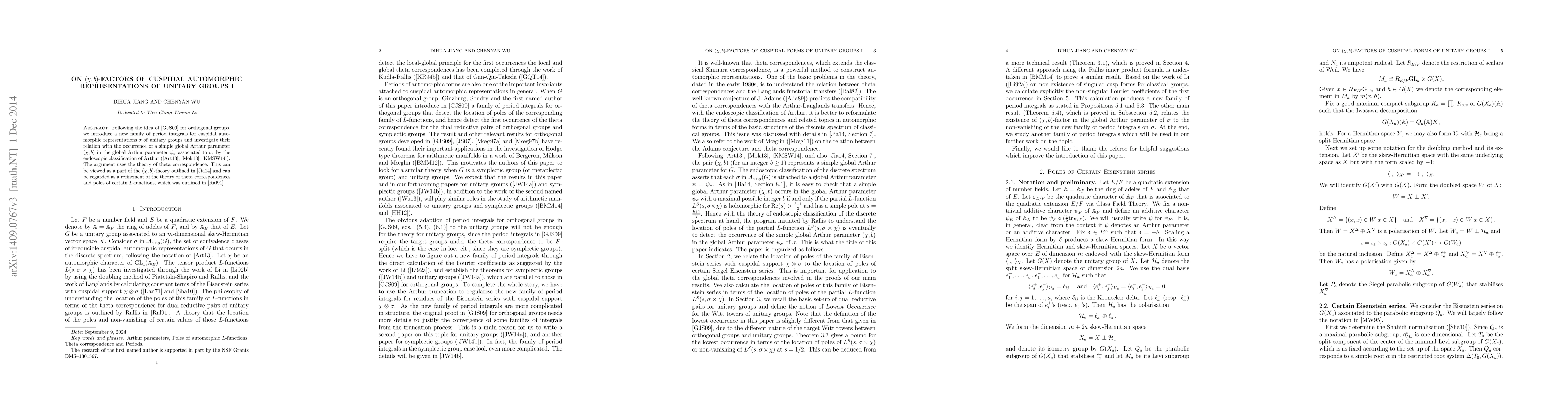 This paper introduces a new family of period integrals for cuspidal automorphic representations of unitary groups, exploring their connection to the presence of a simple global Arthur parameter $(\chi,b)$ in the associated global Arthur parameter $\psi_\sigma$. The study employs the theory of theta correspondence and is part of the $(\chi,b)$-theory, refining previous theories of theta correspondences and $L$-functions.