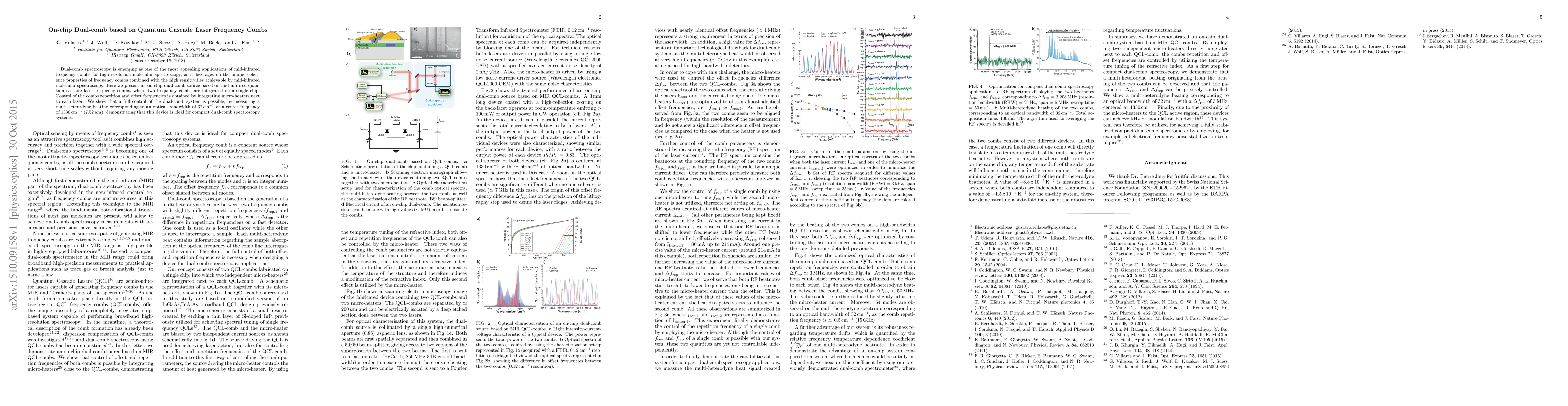 This paper presents an on-chip dual-comb source using mid-infrared quantum cascade laser frequency combs, demonstrating full control over comb repetition and offset frequencies. The system shows high-resolution molecular spectroscopy capabilities, with an optical bandwidth of 32 cm$^{-1}$ at a center frequency of 1330 cm$^{-1}$.