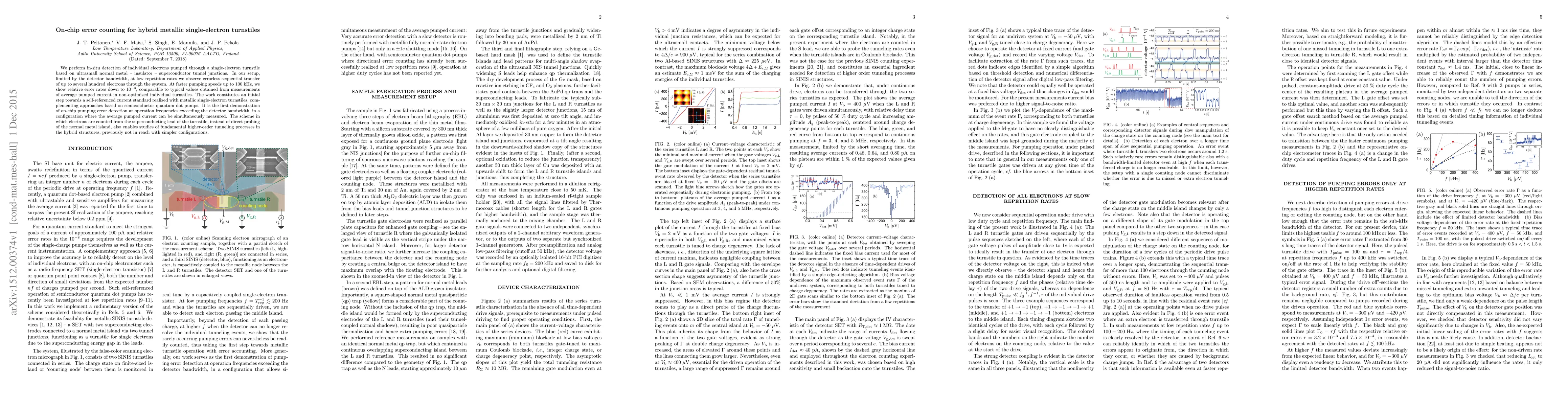 This paper demonstrates on-chip error counting for metallic single-electron turnstiles using ultrasmall normal metal-insulator-superconductor junctions, achieving error rates down to 10^-3 at high speeds, and enabling studies of higher-order tunneling processes. The method provides a self-referenced current standard and surpasses detector bandwidth limitations.
