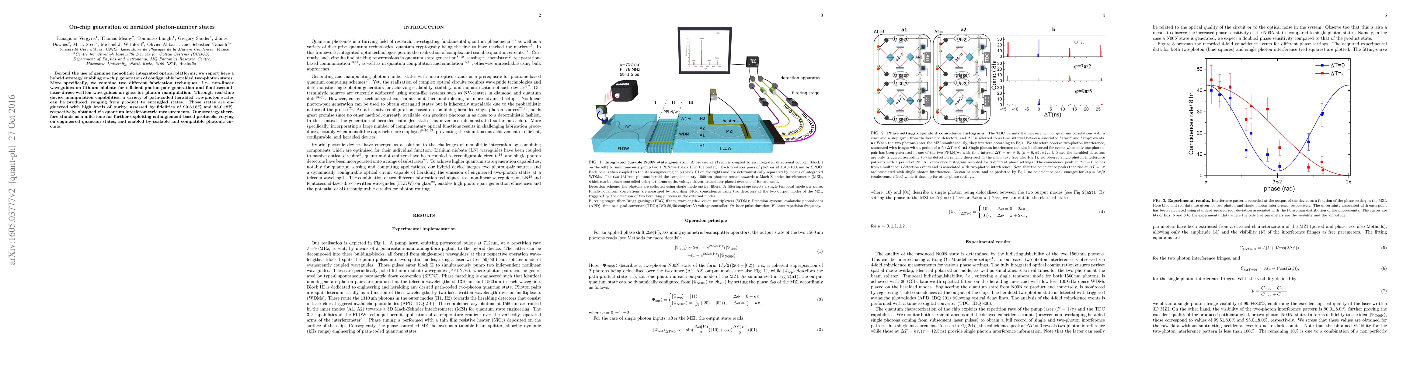 This paper presents a hybrid approach combining non-linear waveguides on lithium niobate and femtosecond-laser-direct-written waveguides on glass to generate configurable heralded two-photon states with high purity, paving the way for scalable entanglement-based quantum protocols.
