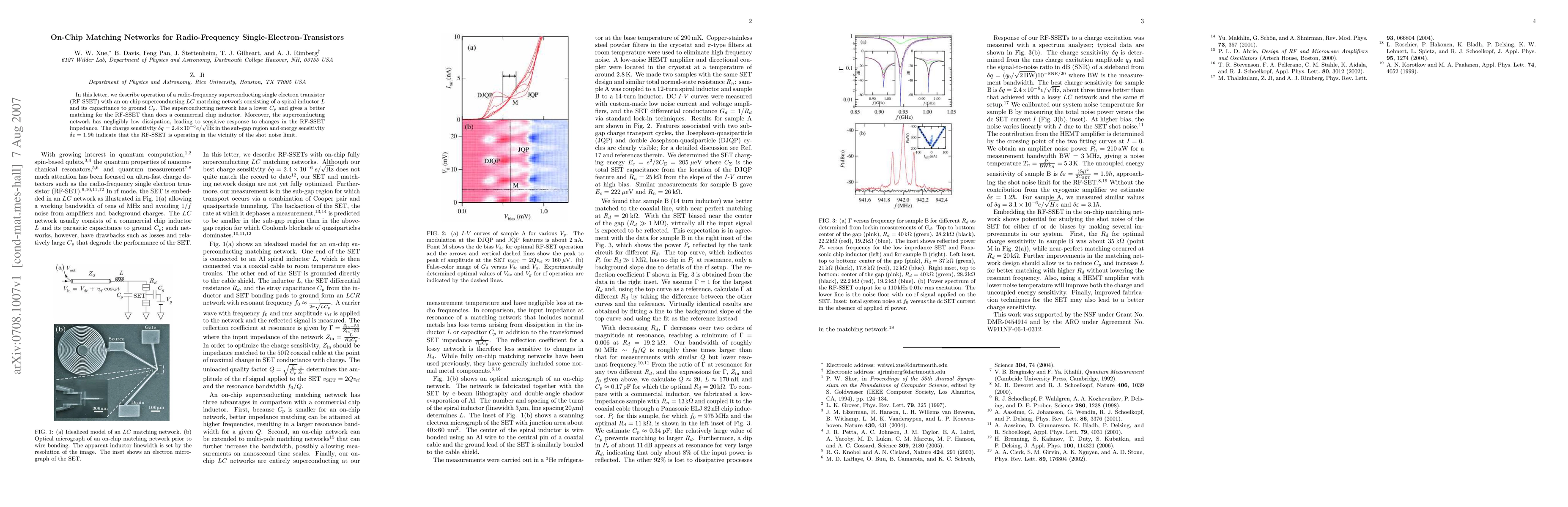 This paper presents an on-chip superconducting LC matching network for a radio-frequency superconducting single electron transistor (RF-SSET), demonstrating lower parasitic capacitance and dissipation compared to commercial alternatives, achieving high sensitivity near the shot noise limit.