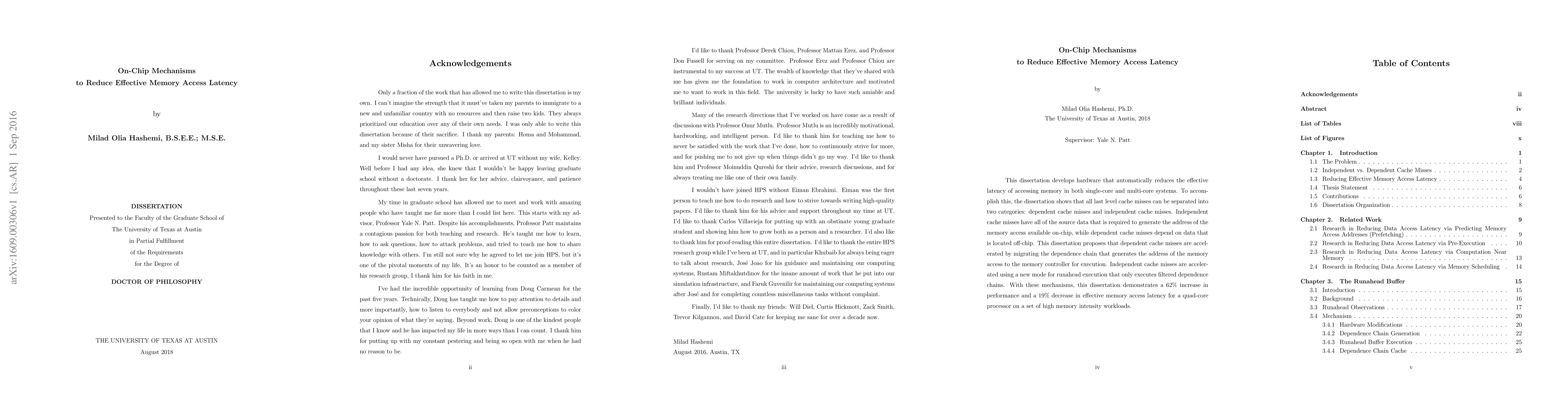 This research paper proposes new on-chip mechanisms to reduce memory access latency, achieving a 62% performance boost and 19% decrease in effective memory access latency for quad-core processors.