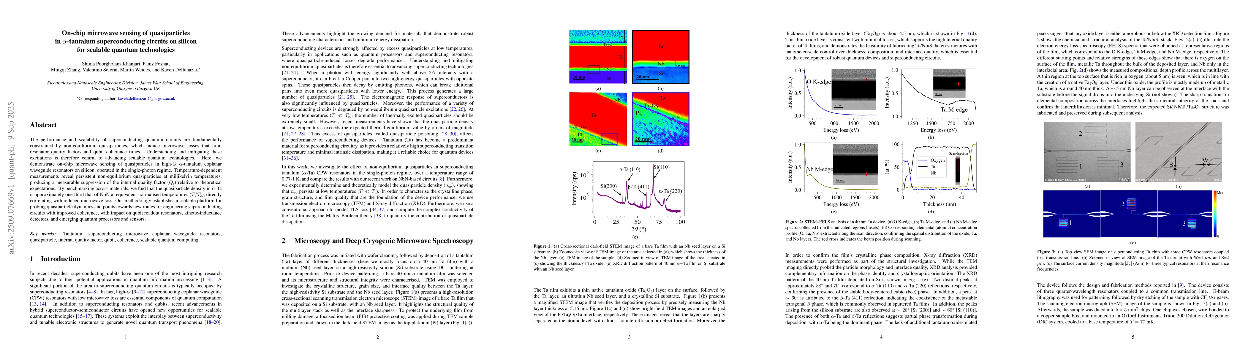The performance and scalability of superconducting quantum circuits are fundamentally constrained by non-equilibrium quasiparticles, which induce microwave losses that limit resonator quality factors and qubit coherence times. Understanding and mitigating these excitations is therefore central to advancing scalable quantum technologies. Here, we demonstrate on-chip microwave sensing of quasiparticles in high-Q {\alpha}-tantalum coplanar waveguide resonators on silicon, operated in the single-photon regime. Temperature-dependent measurements reveal persistent non-equilibrium quasiparticles at millikelvin temperatures, producing a measurable suppression of the internal quality factor (Qi) relative to theoretical expectations. By benchmarking across materials, we find that the quasiparticle density in {\alpha}-Ta is approximately one-third that of NbN at equivalent normalised temperatures (T/Tc), directly correlating with reduced microwave loss. Our methodology establishes a scalable platform for probing quasiparticle dynamics and points towards new routes for engineering superconducting circuits with improved coherence, with impact on qubit readout resonators, kinetic-inductance detectors, and emerging quantum processors and sensors.