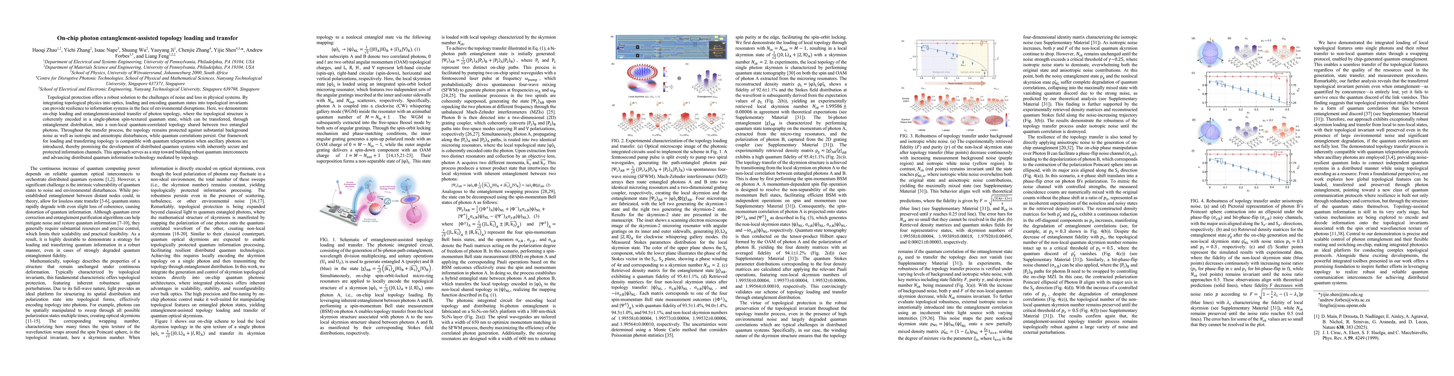 Topological protection offers a robust solution to the challenges of noise and loss in physical systems. By integrating topological physics into optics, loading and encoding quantum states into topological invariants can provide resilience to information systems in the face of environmental disruptions. Here, we demonstrate on-chip loading and entanglement-assisted transfer of photon topology, where the topological structure is coherently encoded in a single-photon spin-textured quantum state, which can be transferred, through entanglement distribution, into a non-local quantum-correlated topology shared between two entangled photons. Throughout the transfer process, the topology remains protected against substantial background noise as well as isotropic and anisotropic disturbances, while quantum correlations persist. Our framework for loading and transferring topology is compatible with quantum teleportation when ancillary photons are introduced, thereby promising the development of distributed quantum systems with inherently secure and protected information channels. This approach serves as a step toward building robust quantum interconnects and advancing distributed quantum information technology mediated by topology.