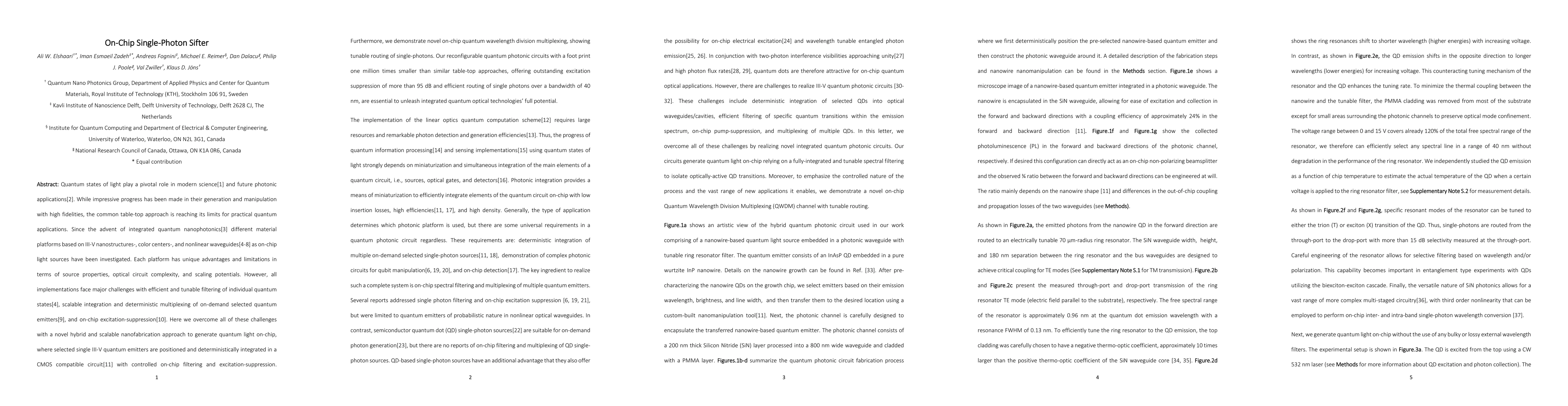 Quantum states of light play a pivotal role in modern science[1] and future photonic applications[2]. While impressive progress has been made in their generation and manipulation with high fidelities, the common table-top approach is reaching its limits for practical quantum applications. Since the advent of integrated quantum nanophotonics[3] different material platforms based on III-V nanostructures-, color centers-, and nonlinear waveguides[4-8] as on-chip light sources have been investigated. Each platform has unique advantages and limitations in terms of source properties, optical circuit complexity, and scaling potentials. However, all implementations face major challenges with efficient and tunable filtering of individual quantum states[4], scalable integration and deterministic multiplexing of on-demand selected quantum emitters[9], and on-chip excitation-suppression[10]. Here we overcome all of these challenges with a novel hybrid and scalable nanofabrication approach to generate quantum light on-chip, where selected single III-V quantum emitters are positioned and deterministically integrated in a CMOS compatible circuit[11] with controlled on-chip filtering and excitation-suppression.Furthermore, we demonstrate novel on-chip quantum wavelength division multiplexing, showing tunable routing of single-photons. Our reconfigurable quantum photonic circuits with a foot print one million times smaller than similar table-top approaches, offering outstanding excitation suppression of more than 95 dB and efficient routing of single photons over a bandwidth of 40 nm, are essential to unleash integrated quantum optical technologies full potential.