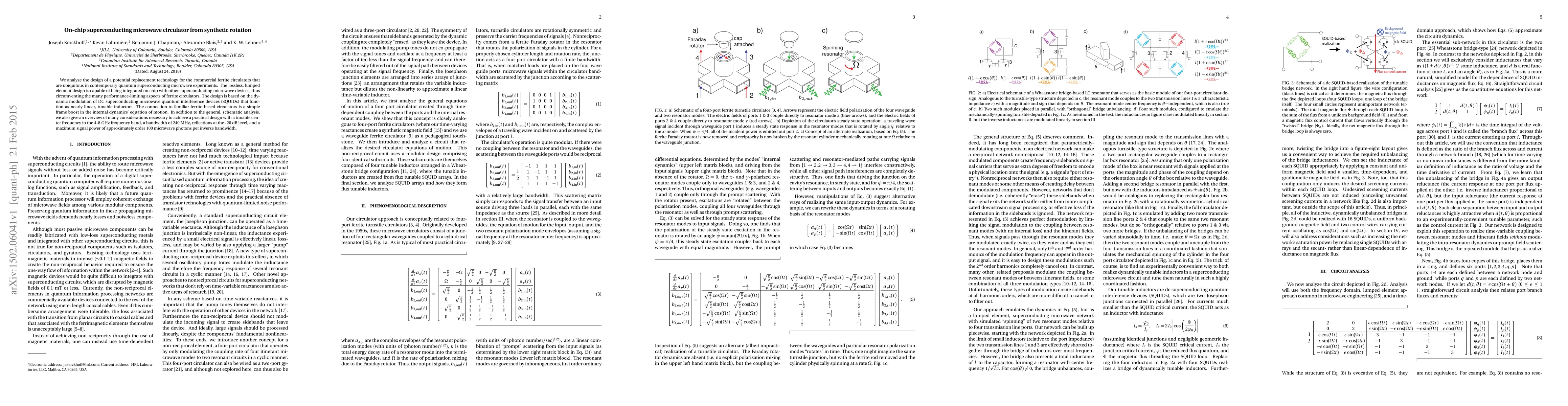 This paper proposes a novel on-chip superconducting microwave circulator based on synthetic rotation using SQUIDs, aiming to replace commercial ferrite circulators. The design promises lossless integration with other superconducting devices, addressing performance limitations of existing circulators.