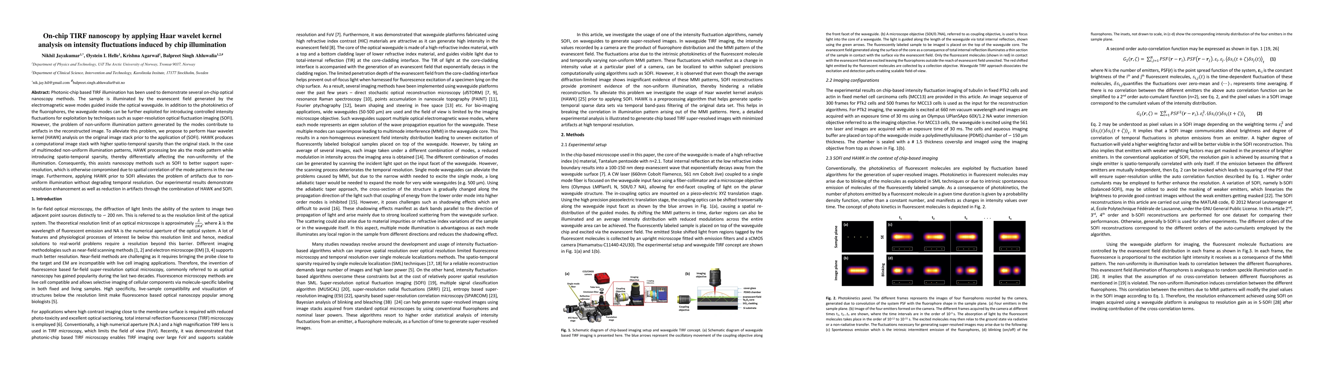 Photonic-chip based TIRF illumination has been used to demonstrate several on-chip optical nanoscopy methods. The sample is illuminated by the evanescent field generated by the electromagnetic wave modes guided inside the optical waveguide. In addition to the photokinetics of the fluorophores, the waveguide modes can be further exploited for introducing controlled intensity fluctuations for exploitation by techniques such as super-resolution optical fluctuation imaging (SOFI). However, the problem of non-uniform illumination pattern generated by the modes contribute to artifacts in the reconstructed image. To alleviate this problem, we propose to perform Haar wavelet kernel (HAWK) analysis on the original image stack prior to the application of (SOFI). HAWK produces a computational image stack with higher spatio-temporal sparsity than the original stack. In the case of multimoded non-uniform illumination patterns, HAWK processing bre aks the mode pattern while introducing spatio-temporal sparsity, thereby differentially affecting the non-uniformity of the illumination. Consequently, this assists nanoscopy methods such as SOFI to better support super-resolution, which is otherwise compromised due to spatial correlation of the mode patterns in the raw image. Furthermore, applying HAWK prior to SOFI alleviates the problem of artifacts due to non-uniform illumination without degrading temporal resolution. Our experimental results demonstrate resolution enhancement as well as reduction in artifacts through the combination of HAWK and SOFI.