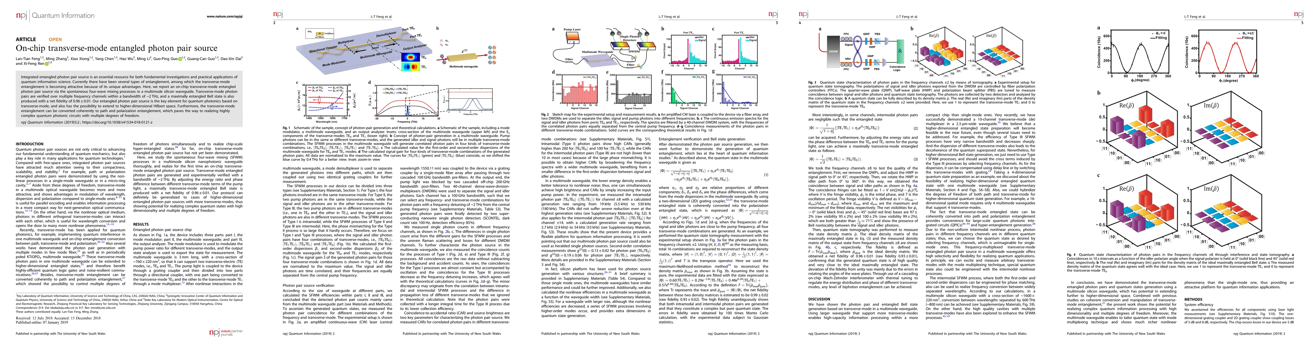 The paper introduces an on-chip transverse-mode entangled photon pair source using spontaneous four-wave mixing in a multimode silicon waveguide, demonstrating high fidelity and broad bandwidth.