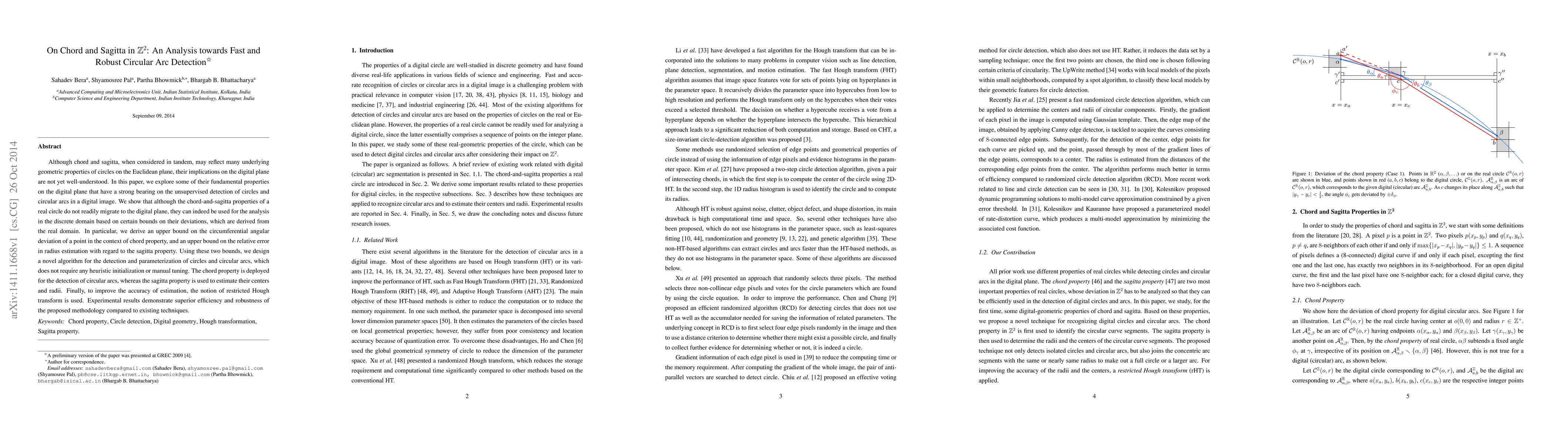 Although chord and sagitta, when considered in tandem, may reflect many underlying geometric properties of circles on the Euclidean plane, their implications on the digital plane are not yet well-understood. In this paper, we explore some of their fundamental properties on the digital plane that have a strong bearing on the unsupervised detection of circles and circular arcs in a digital image. We show that although the chord-and-sagitta properties of a real circle do not readily migrate to the digital plane, they can indeed be used for the analysis in the discrete domain based on certain bounds on their deviations, which are derived from the real domain. In particular, we derive an upper bound on the circumferential angular deviation of a point in the context of chord property, and an upper bound on the relative error in radius estimation with regard to the sagitta property. Using these two bounds, we design a novel algorithm for the detection and parameterization of circles and circular arcs, which does not require any heuristic initialization or manual tuning. The chord property is deployed for the detection of circular arcs, whereas the sagitta property is used to estimate their centers and radii. Finally, to improve the accuracy of estimation, the notion of restricted Hough transform is used. Experimental results demonstrate superior efficiency and robustness of the proposed methodology compared to existing techniques.
