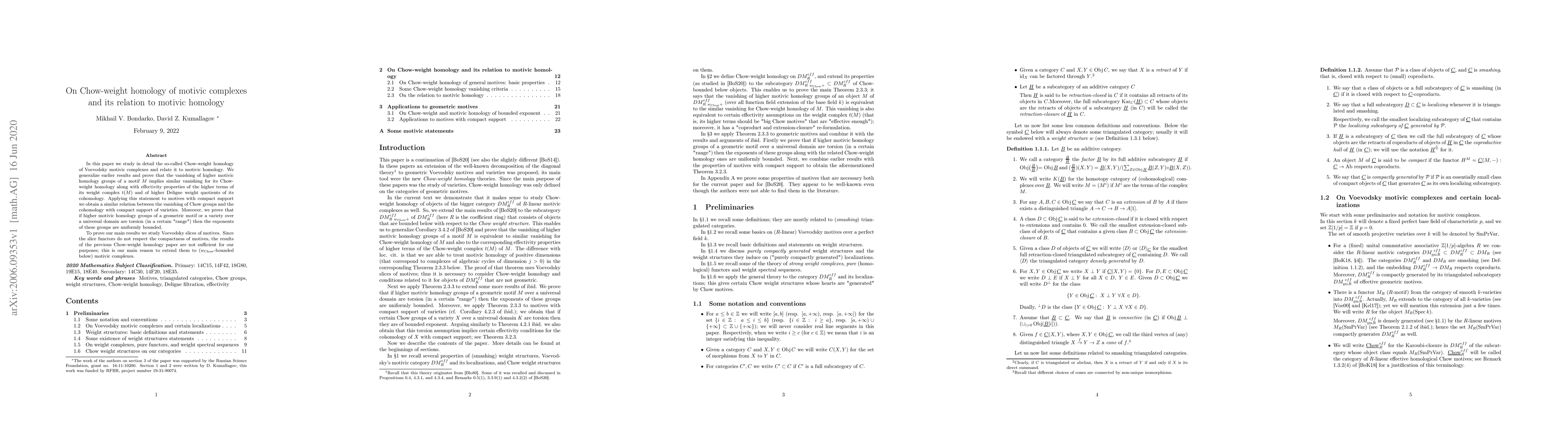 This paper investigates the Chow-weight homology of Voevodsky motivic complexes and establishes its connection to motivic homology, proving that vanishing in motivic homology implies similar properties in Chow-weight homology, along with boundedness of exponents for certain torsion motivic groups.