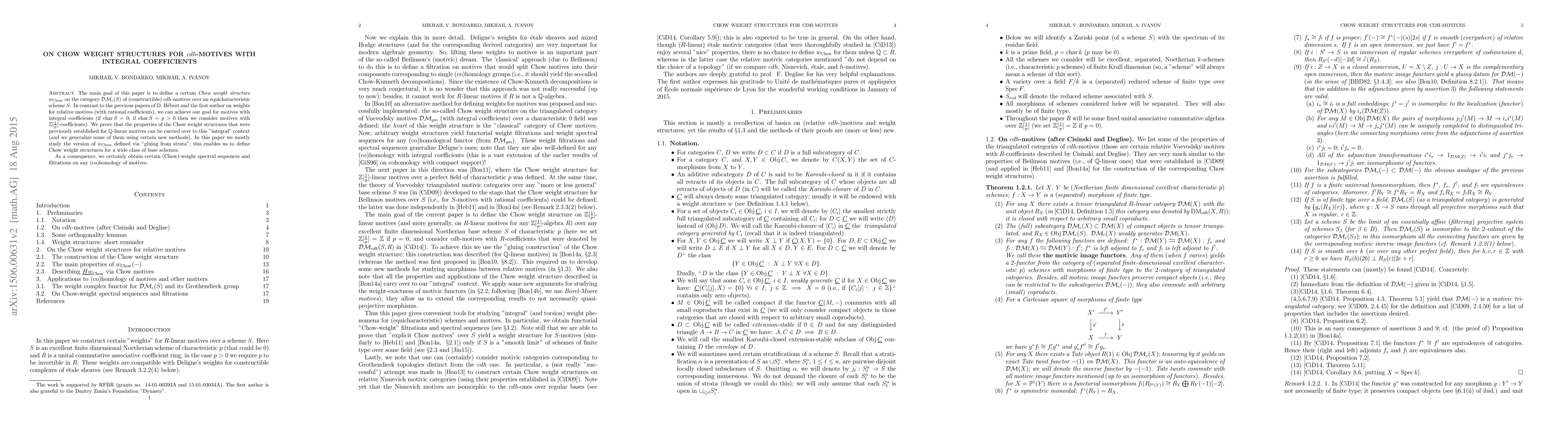 The main goal of this paper is to define a certain Chow weight structure $w_{Chow}$ on the category $DM_c(S)$ of (constructible) $cdh$-motives over an equicharacteristic scheme $S$. In contrast to the previous papers of D. H\'ebert and the first author on weights for relative motives (with rational coefficients), we can achieve our goal for motives with integral coefficients (if $\operatorname{char}S=0$; if $\operatorname{char}S=p>0$ then we consider motives with $\mathbb{Z}[\frac{1}{p}]$-coefficients). We prove that the properties of the Chow weight structures that were previously established for $\mathbb{Q}$-linear motives can be carried over to this "integral" context (and we generalize some of them using certain new methods). In this paper we mostly study the version of $w_{Chow}$ defined via "gluing from strata"; this enables us to define Chow weight structures for a wide class of base schemes. As a consequence, we certainly obtain certain (Chow)-weight spectral sequences and filtrations for any (co)homology of motives.