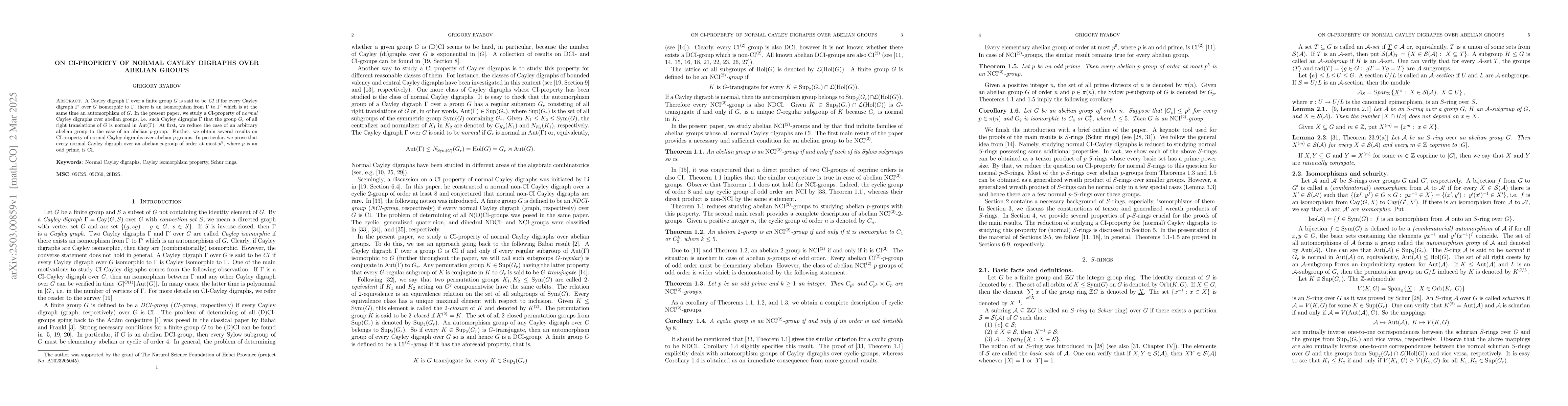 The paper introduces and develops the concept of CI-property for normal Cayley digraphs over abelian groups, providing detailed reductions and proofs for abelian p-groups.