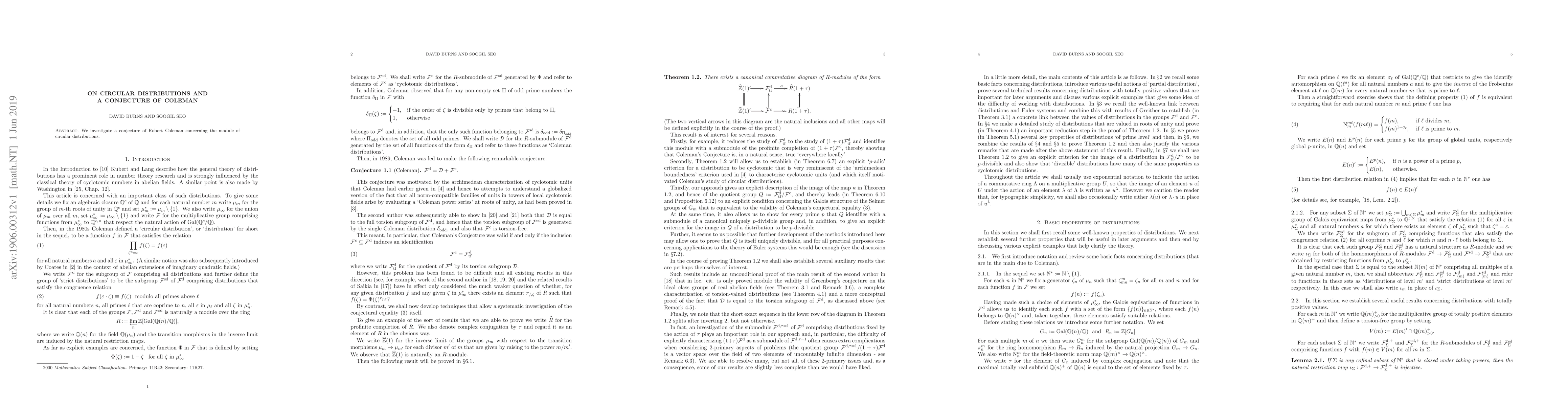 We investigate a conjecture of Robert Coleman concerning the module of circular distributions.