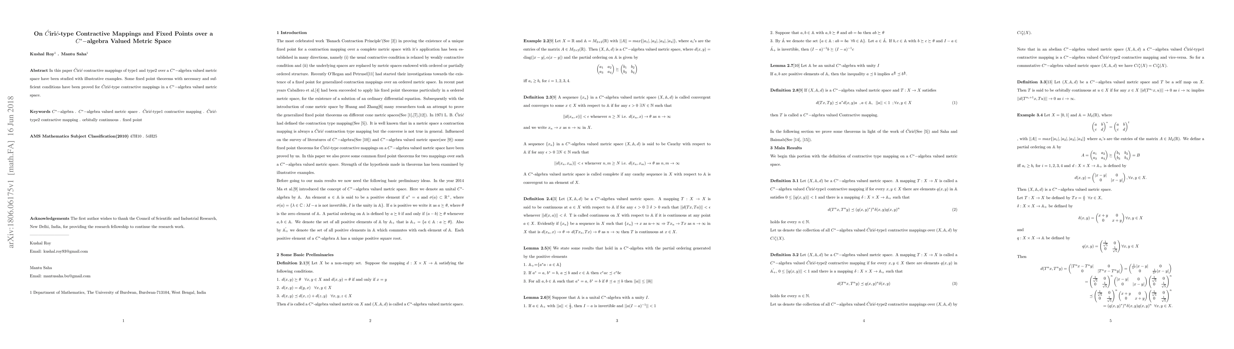 This paper studies Ciric-type contractive mappings on a C*-algebra valued metric space, proving necessary and sufficient conditions for fixed points with illustrative examples.
