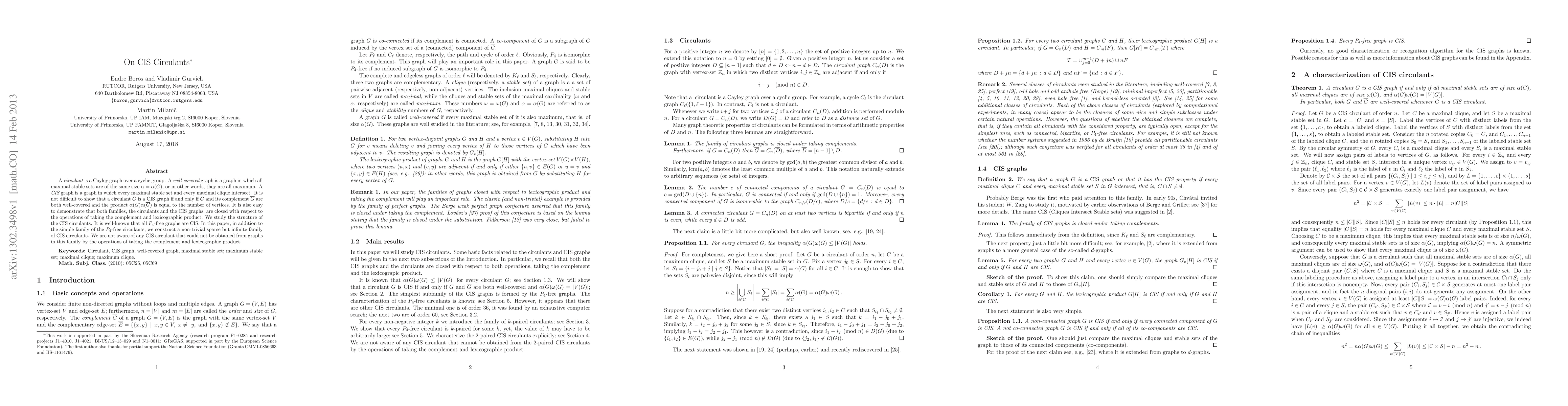This paper explores the structure of CIS circulant graphs, demonstrating that they satisfy specific properties when both the graph and its complement are well-covered. The authors construct a non-trivial sparse infinite family of CIS circulant graphs beyond the simple P_4-free ones, suggesting these new graphs can generate any CIS circulant via complementation and lexicographic product operations.