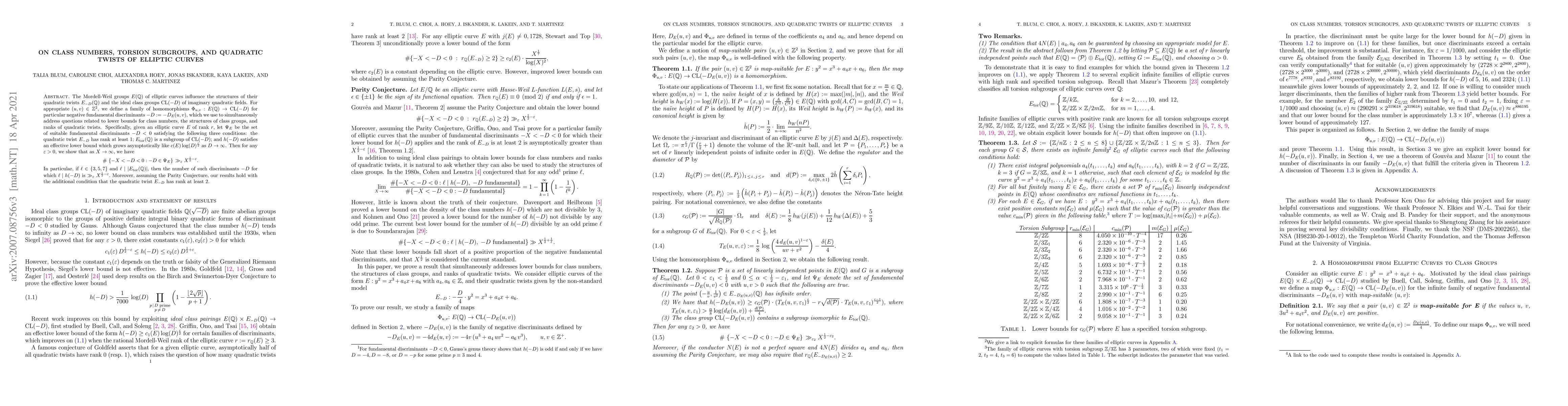 The Mordell-Weil groups $E(\mathbb{Q})$ of elliptic curves influence the structures of their quadratic twists $E_{-D}(\mathbb{Q})$ and the ideal class groups $\mathrm{CL}(-D)$ of imaginary quadratic fields. For appropriate $(u,v) \in \mathbb{Z}^2$, we define a family of homomorphisms $\Phi_{u,v}: E(\mathbb{Q}) \rightarrow \mathrm{CL}(-D)$ for particular negative fundamental discriminants $-D:=-D_E(u,v)$, which we use to simultaneously address questions related to lower bounds for class numbers, the structures of class groups, and ranks of quadratic twists. Specifically, given an elliptic curve $E$ of rank $r$, let $\Psi_E$ be the set of suitable fundamental discriminants $-D<0$ satisfying the following three conditions: the quadratic twist $E_{-D}$ has rank at least 1; $E_{\text{tor}}(\mathbb{Q})$ is a subgroup of $\mathrm{CL}(-D)$; and $h(-D)$ satisfies an effective lower bound which grows asymptotically like $c(E) \log (D)^{\frac{r}{2}}$ as $D \to \infty$. Then for any $\varepsilon > 0$, we show that as $X \to \infty$, we have $$\#\, \left\{-X < -D < 0: -D \in \Psi_E \right \} \, \gg_{\varepsilon} X^{\frac{1}{2}-\varepsilon}.$$ In particular, if $\ell \in \{3,5,7\}$ and $\ell \mid |E_{\mathrm{tor}}(\mathbb{Q})|$, then the number of such discriminants $-D$ for which $\ell \mid h(-D)$ is $\gg_{\varepsilon} X^{\frac{1}{2}-\varepsilon}.$ Moreover, assuming the Parity Conjecture, our results hold with the additional condition that the quadratic twist $E_{-D}$ has rank at least 2.