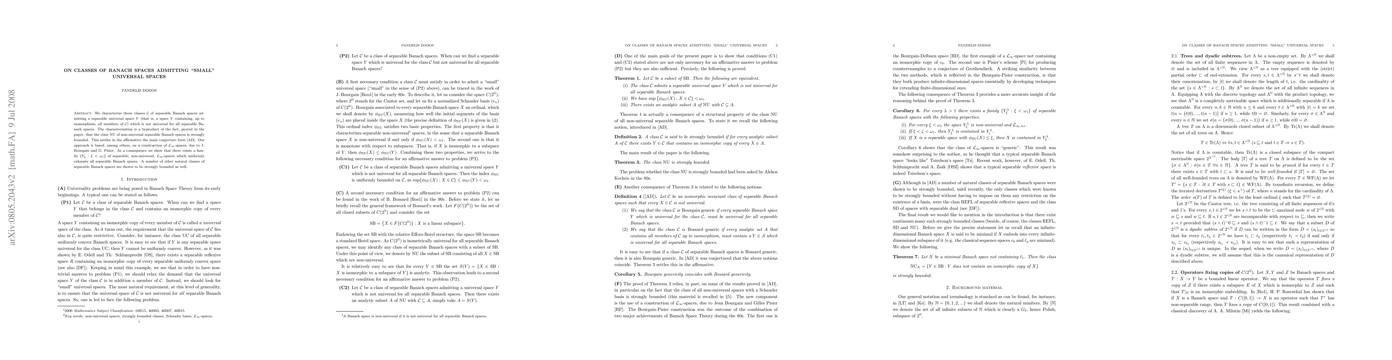 We characterize those classes $\ccc$ of separable Banach spaces admitting a separable universal space $Y$ (that is, a space $Y$ containing, up to isomorphism, all members of $\ccc$) which is not universal for all separable Banach spaces. The characterization is a byproduct of the fact, proved in the paper, that the class $\mathrm{NU}$ of non-universal separable Banach spaces is strongly bounded. This settles in the affirmative the main conjecture form \cite{AD}. Our approach is based, among others, on a construction of $\llll_\infty$-spaces, due to J. Bourgain and G. Pisier. As a consequence we show that there exists a family $\{Y_\xi:\xi<\omega_1\}$ of separable, non-universal, $\llll_\infty$-spaces which uniformly exhausts all separable Banach spaces. A number of other natural classes of separable Banach spaces are shown to be strongly bounded as well.