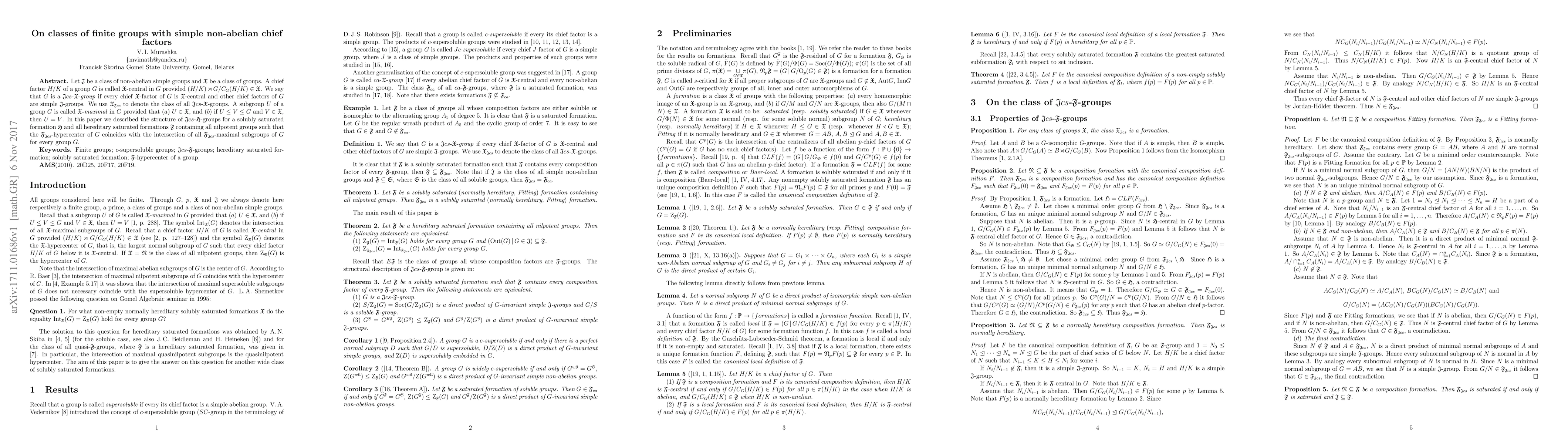 Let $\mathfrak{J}$ be a class of non-abelian simple groups and $\mathfrak{X}$ be a class of groups. A chief factor $H/K$ of a group $G$ is called $\mathfrak{X}$-central in $G$ provided $(H/K)\rtimes G/C_G(H/K)\in\mathfrak{X}$. We say that $G$ is a $\mathfrak{J}cs$-$\mathfrak{X}$-\emph{group} if every chief $\mathfrak{X}$-factor of $G$ is $\mathfrak{X}$-central and other chief factors of $G$ are simple $\mathfrak{J}$-groups. We use $\mathfrak{X}_{\mathfrak{J}cs}$ to denote the class of all $\mathfrak{J}cs$-$\mathfrak{X}$-groups. A subgroup $U$ of a group $G$ is called $\mathfrak{X}$-\emph{maximal} in $G$ provided that $(a)$ $U\in\mathfrak{X}$, and $(b)$ if $U\leq V \leq G$ and $V\in\mathfrak{X}$, then $U = V$. In this paper we described the structure of $\mathfrak{J}cs$-$\mathfrak{H}$-groups for a solubly saturated formation $\mathfrak{H}$ and all hereditary saturated formations $\mathfrak{F}$ containing all nilpotent groups such that the $\mathfrak{F}_{\mathfrak{J}cs}$-hypercenter of $G$ coincides with the intersection of all $\mathfrak{F}_{\mathfrak{J}cs}$-maximal subgroups of $G$ for every group $G$.