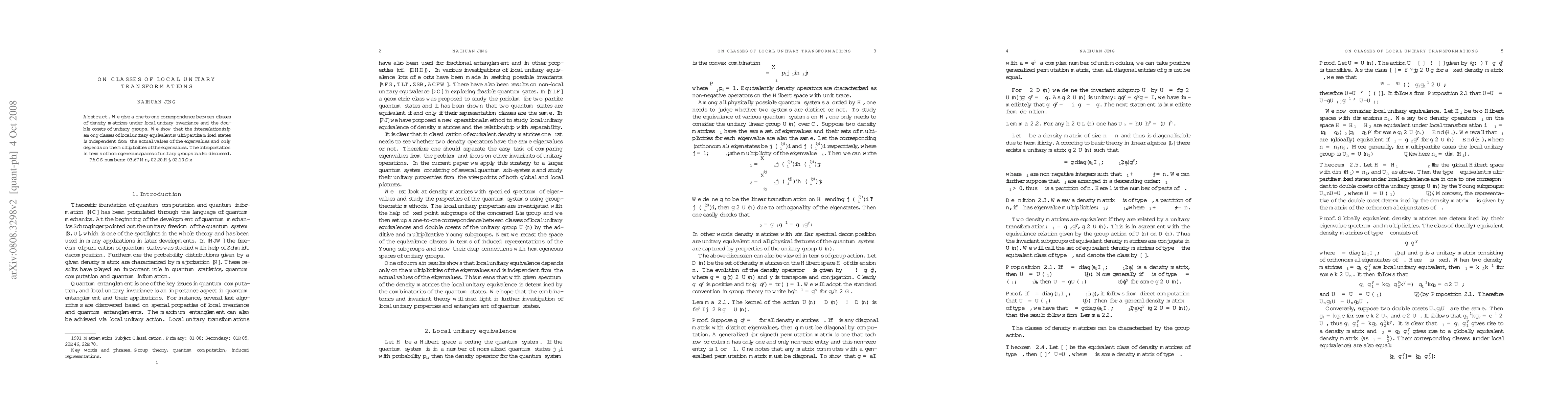 This paper establishes a one-to-one correspondence between classes of local unitary invariant density matrices and double cosets of unitary groups, demonstrating that the relationship among these classes depends solely on the multiplicities of eigenvalues rather than their actual values. The implications in terms of the homogeneous spaces of unitary groups are also explored.