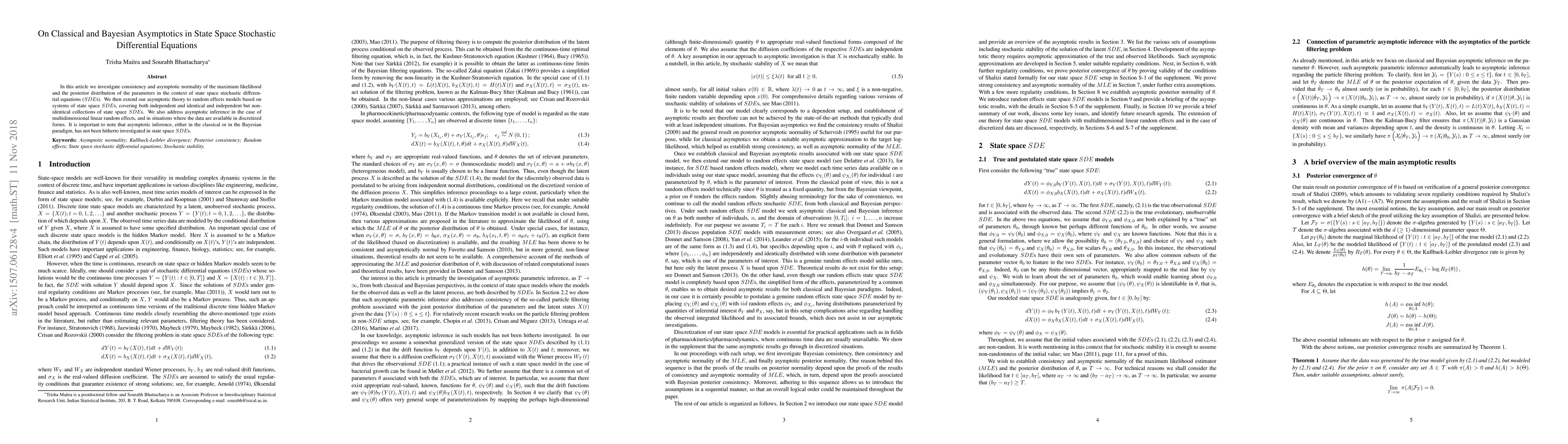 This paper explores the consistency and asymptotic normality of maximum likelihood and posterior distributions for parameters in state space stochastic differential equations (SDEs). It extends these findings to random effects models and addresses multidimensional linear random effects, marking the first investigation of classical and Bayesian asymptotics in this context.