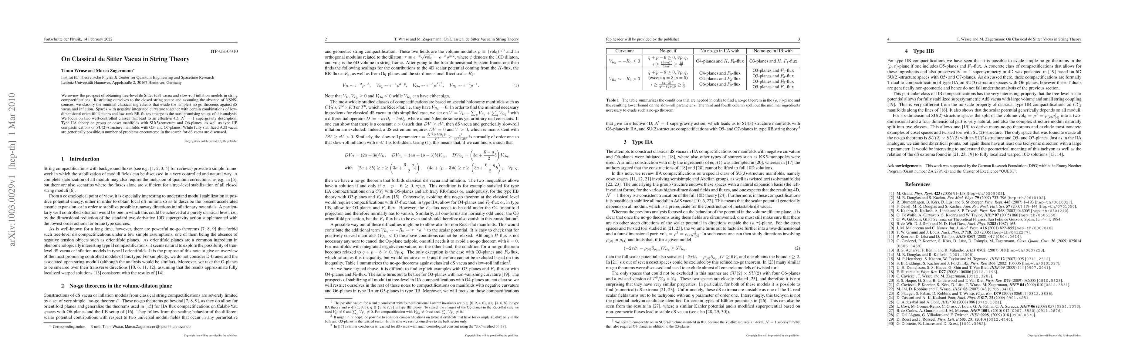 The paper presents a detailed classification of minimal classical ingredients that evade no-go theorems against dS vacua and inflation, focusing on specific string theory compactifications.