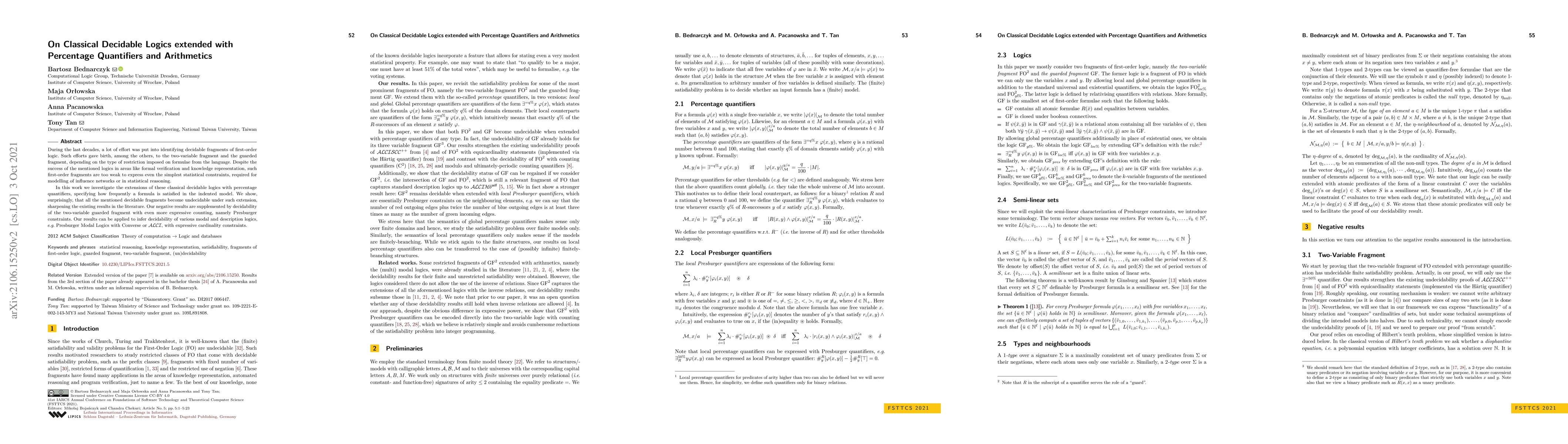 This paper explores extensions of classical decidable fragments of first-order logic with percentage quantifiers and arithmetic, demonstrating that these extensions lead to undecidability. It also presents the decidability of the two-variable guarded fragment with Presburger constraints.