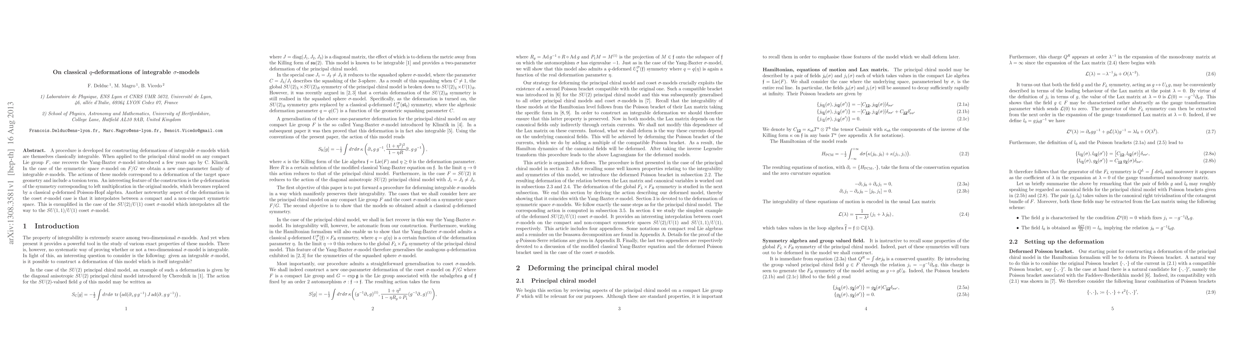 This paper develops a method to construct classically integrable deformations of sigma-models, yielding new integrable models for symmetric spaces and introducing a q-deformed Poisson-Hopf algebra. The deformation interpolates between compact and non-compact symmetric spaces, exemplified by the SU(2)/U(1) to SU(1,1)/U(1) transition.